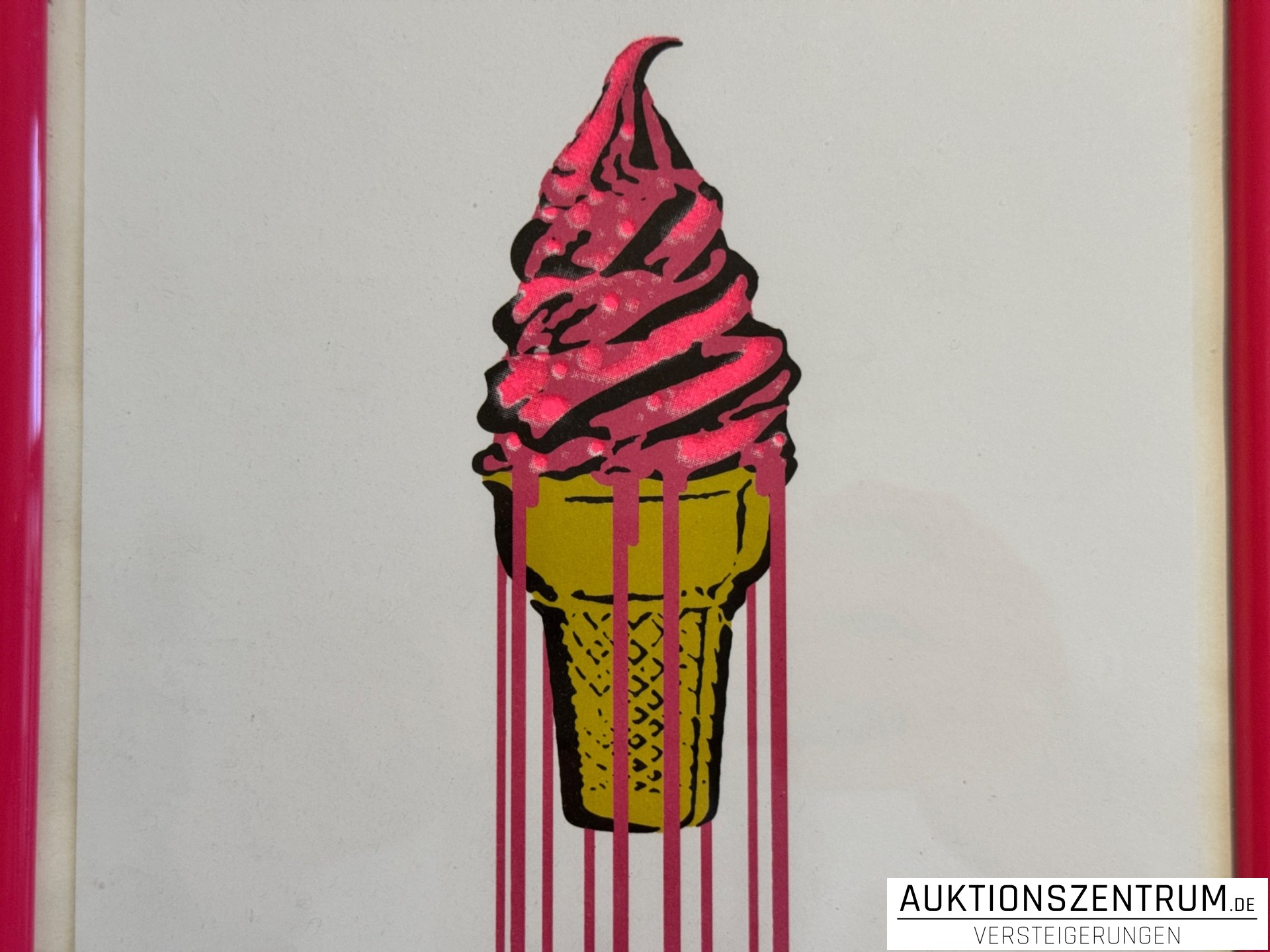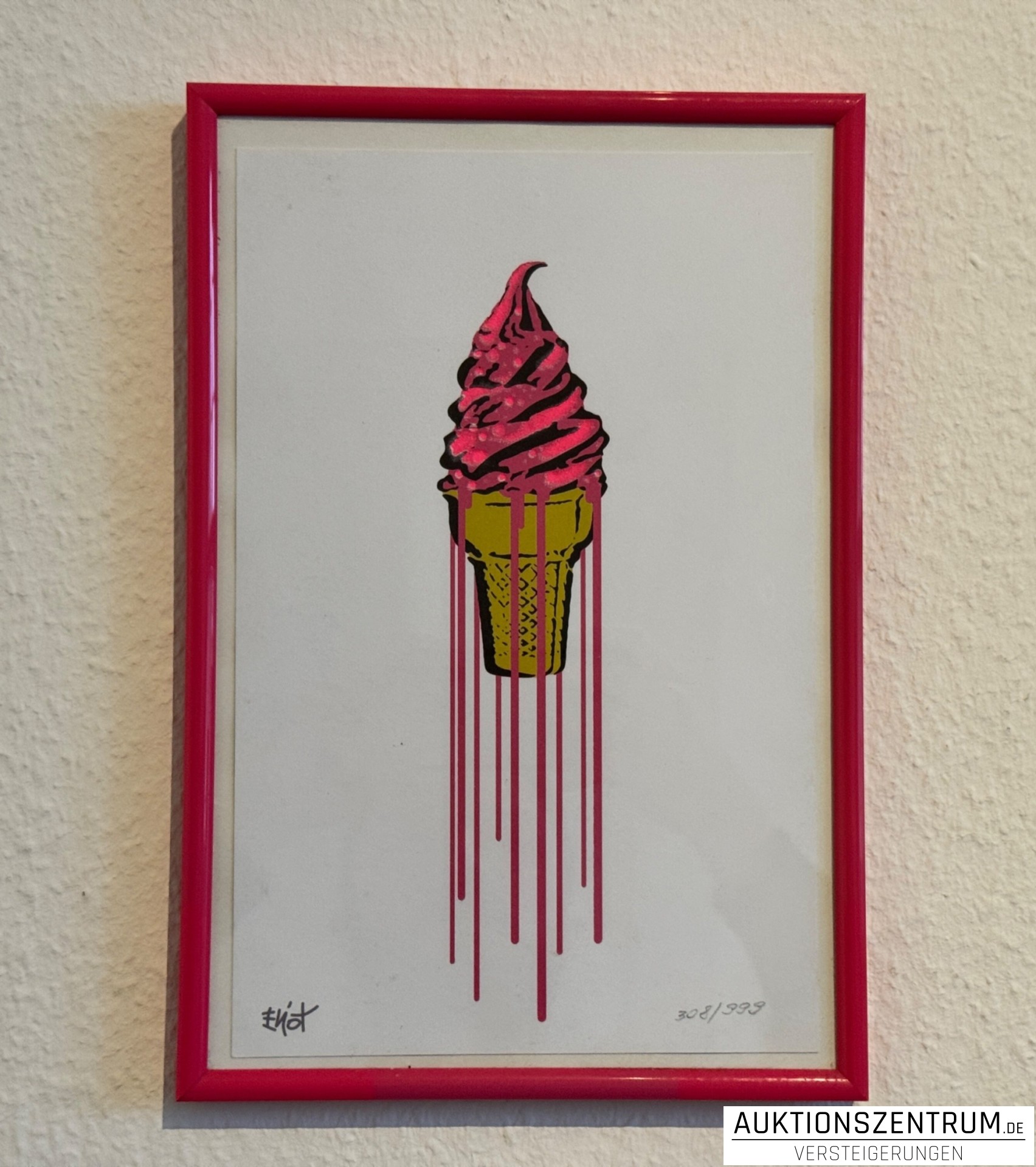Los 83 - ELIOT theSuper (Markus Henning) "Pink Glitter Icecream" Farbsiebdruck gerahmt, 22 x 31cm