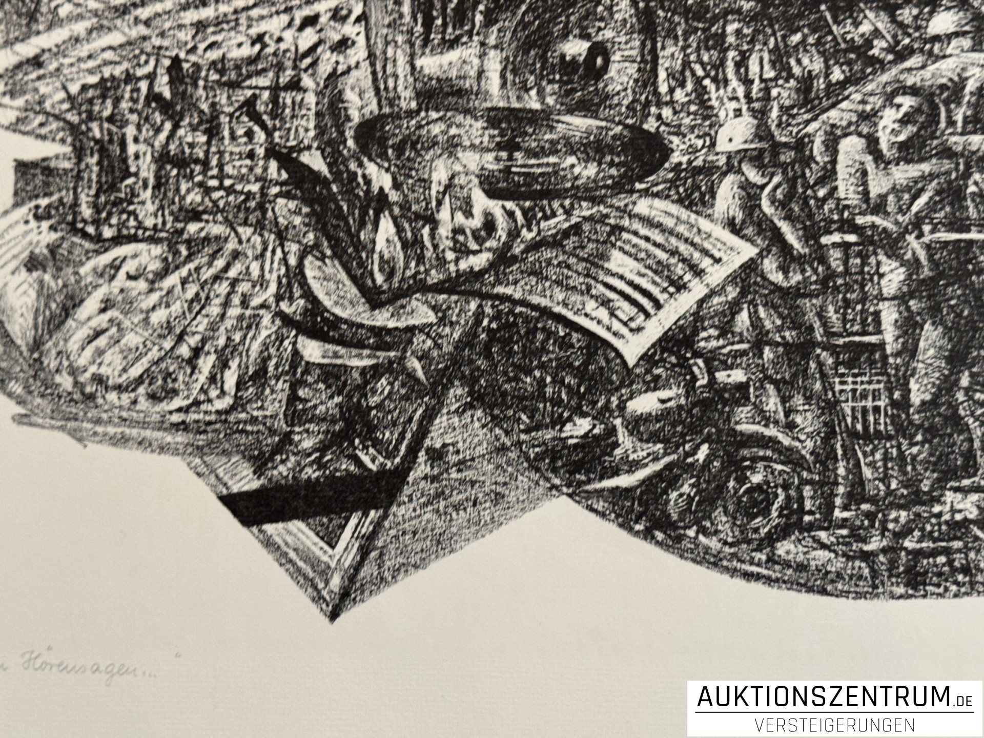Los 126 - Erich Franke Lithografie "Vom Hörensagen" 1975, 58 x 42cm