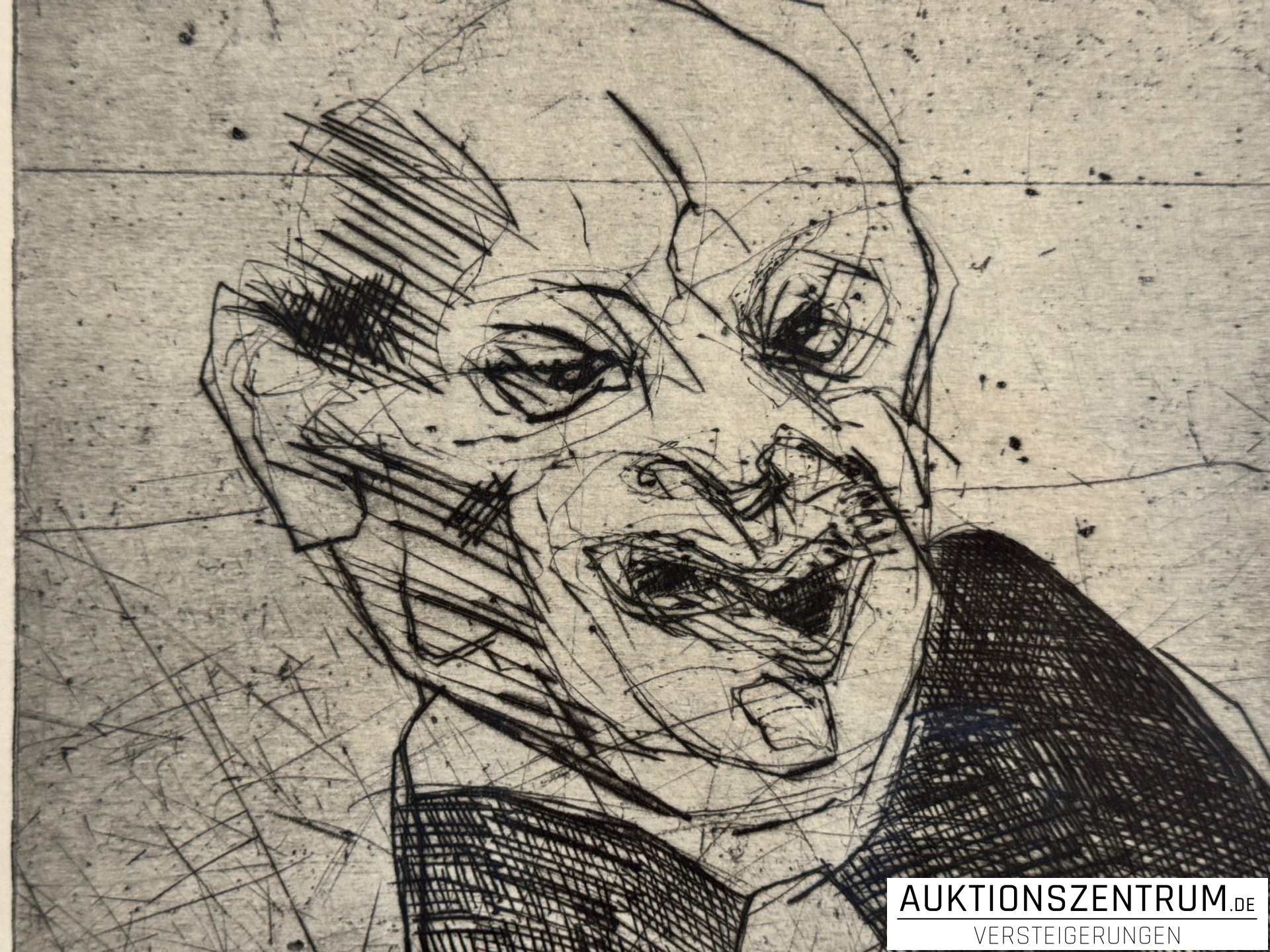 Ausdrucksstarkes, expressives Selbstbildnis des Künstlers in der Technik der Kaltnadelradierung, charakteristisch für Scheibs kraftvolle, grafisch pointierte Bildsprache.