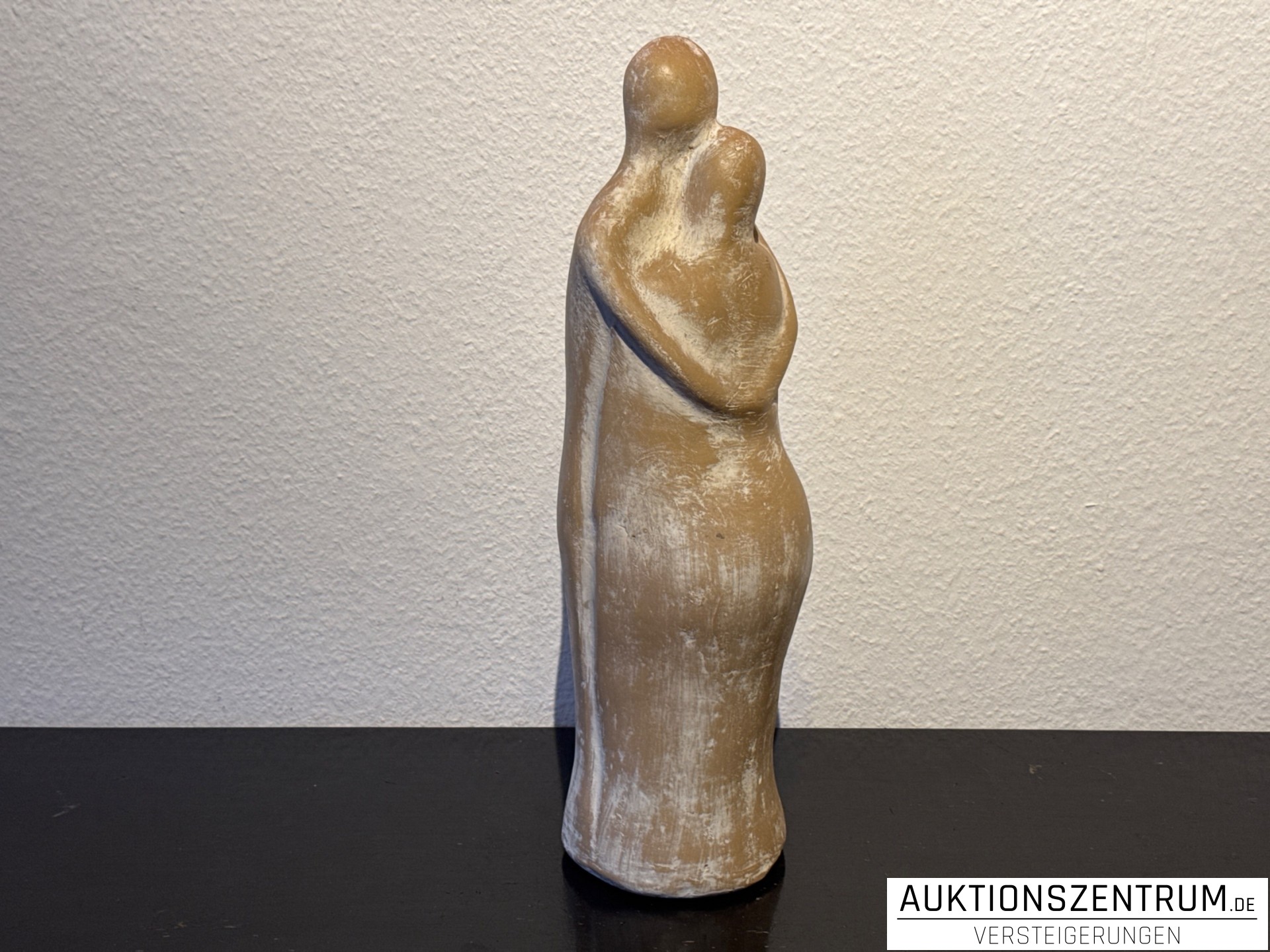 Ausdrucksstarke, modern gestaltete Tonplastik mit der Darstellung zweier eng umschlungener, stark stilisierter Figuren. Die reduzierte Formensprache und die ruhige, vertikale Silhouette verleihen der Skulptur eine zeitlose, meditative Ausstrahlung.