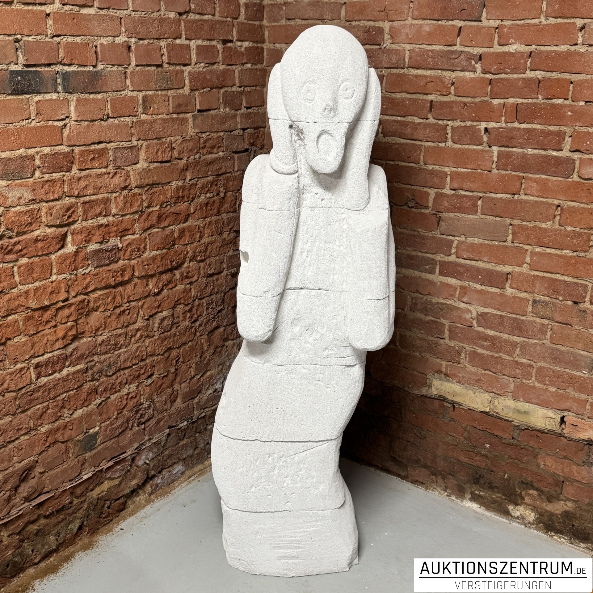 Figurale Steinskulptur „Der Schrei" nach Edvard Munch.