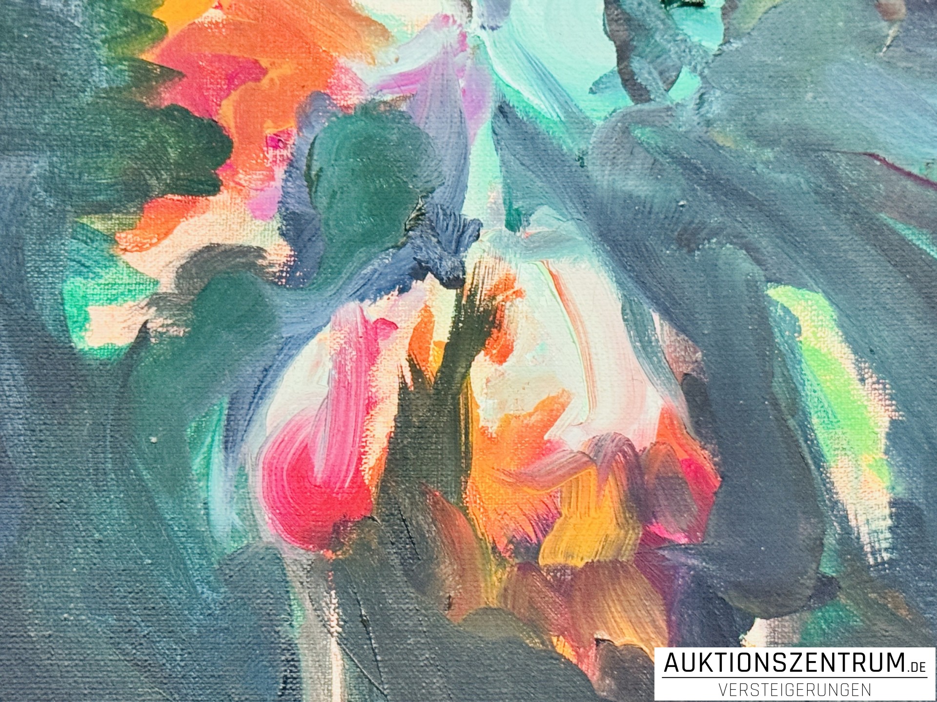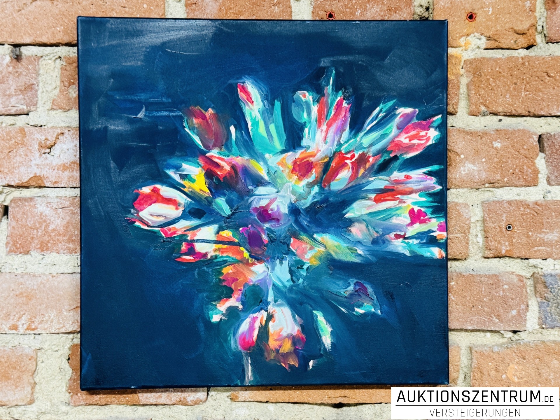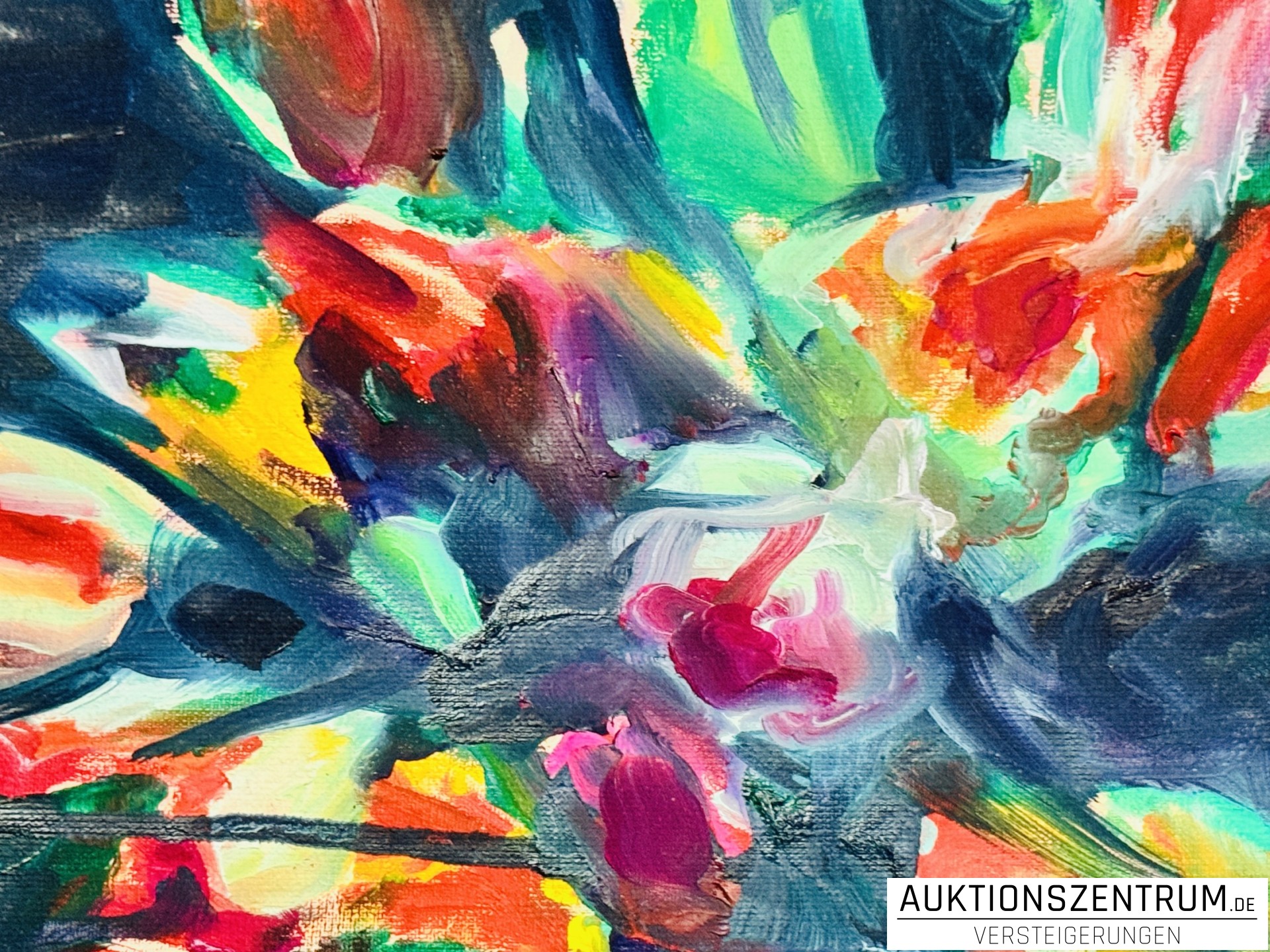 Los 55 - Unikat: Lydia Thomas, Bunter Blumenstrauß, 2010 - Ölbild auf Leinwand, 40 x 40 cm