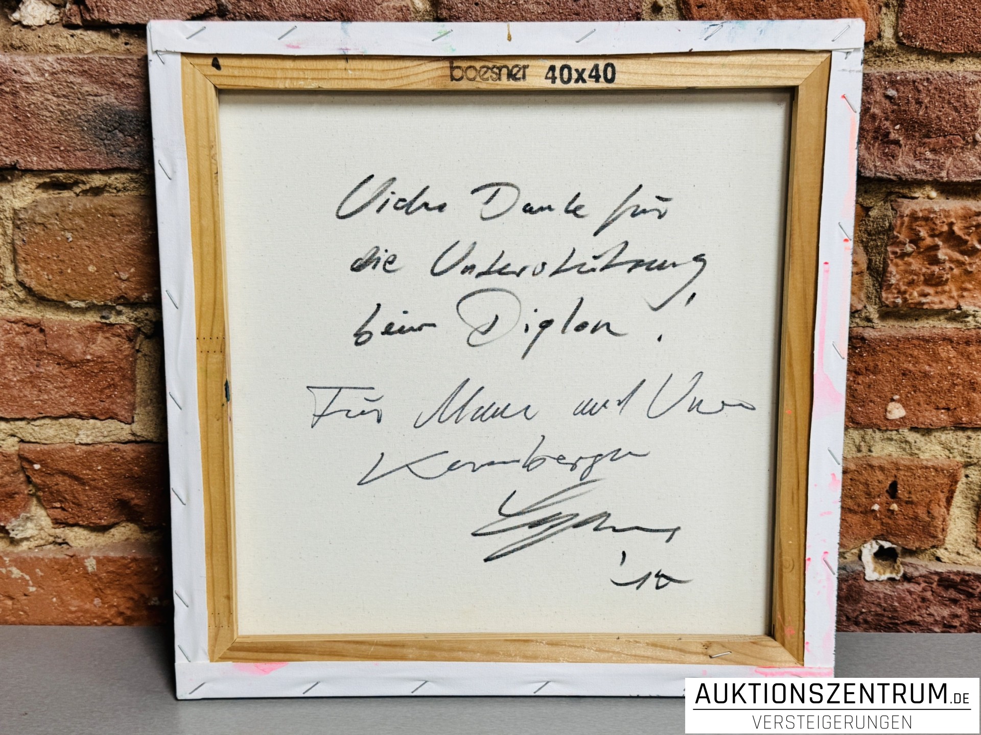 Signierung / Widmung: Auf der Rückseite handschriftlicher Dankestext „Vielen Dank für die Unterstützung beim Diplom…“ mit Signatur und Jahresangabe „10“.