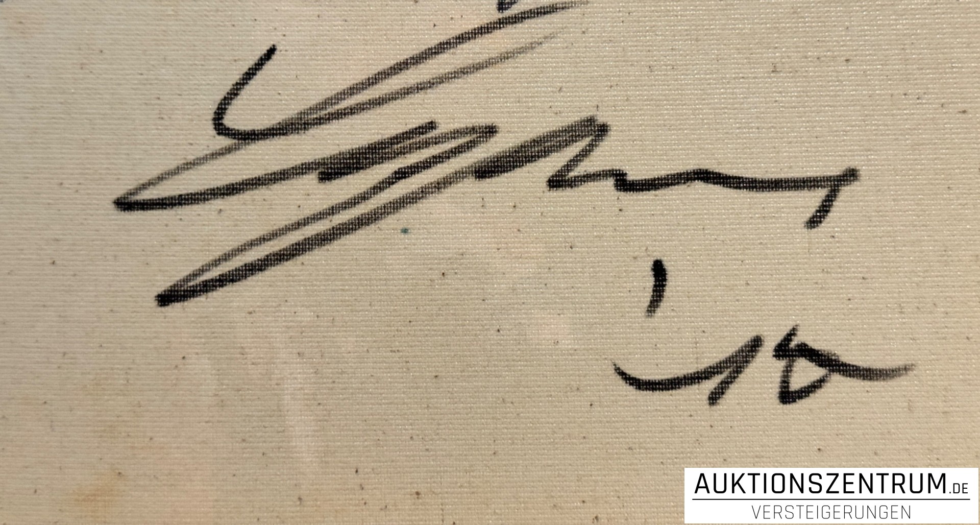 Das Werk ist auf Keilrahmen gespannt und kann direkt gehängt werden. Dekoratives Einzelstück der zeitgenössischen Malerei mit dynamischem Farbauftrag.