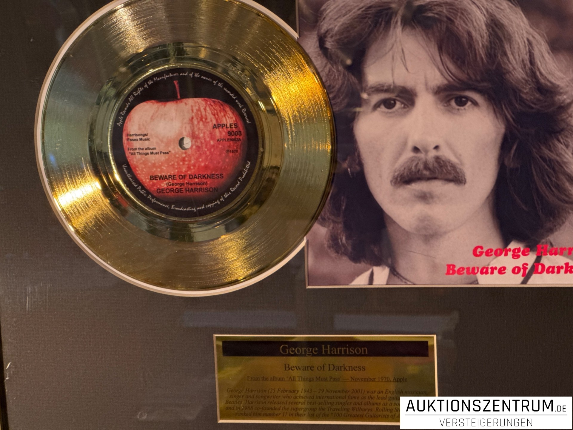 Los 195 - George Harrison Gold Award Display Single: Beware of Darkness, Apple Vinyl