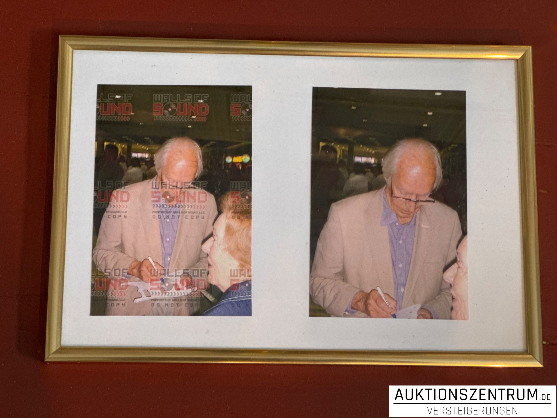Diese einzigartige Collage enthält alle vier Originalsignaturen der Beatles. Der elegante dunkle Rahmen mit Goldkante und schwarzen Passepartout ist besonders dekorativ und ideal für Sammler geeignet. Die Zertifikate sind separat rahmlos hinter Glas verwahrt.