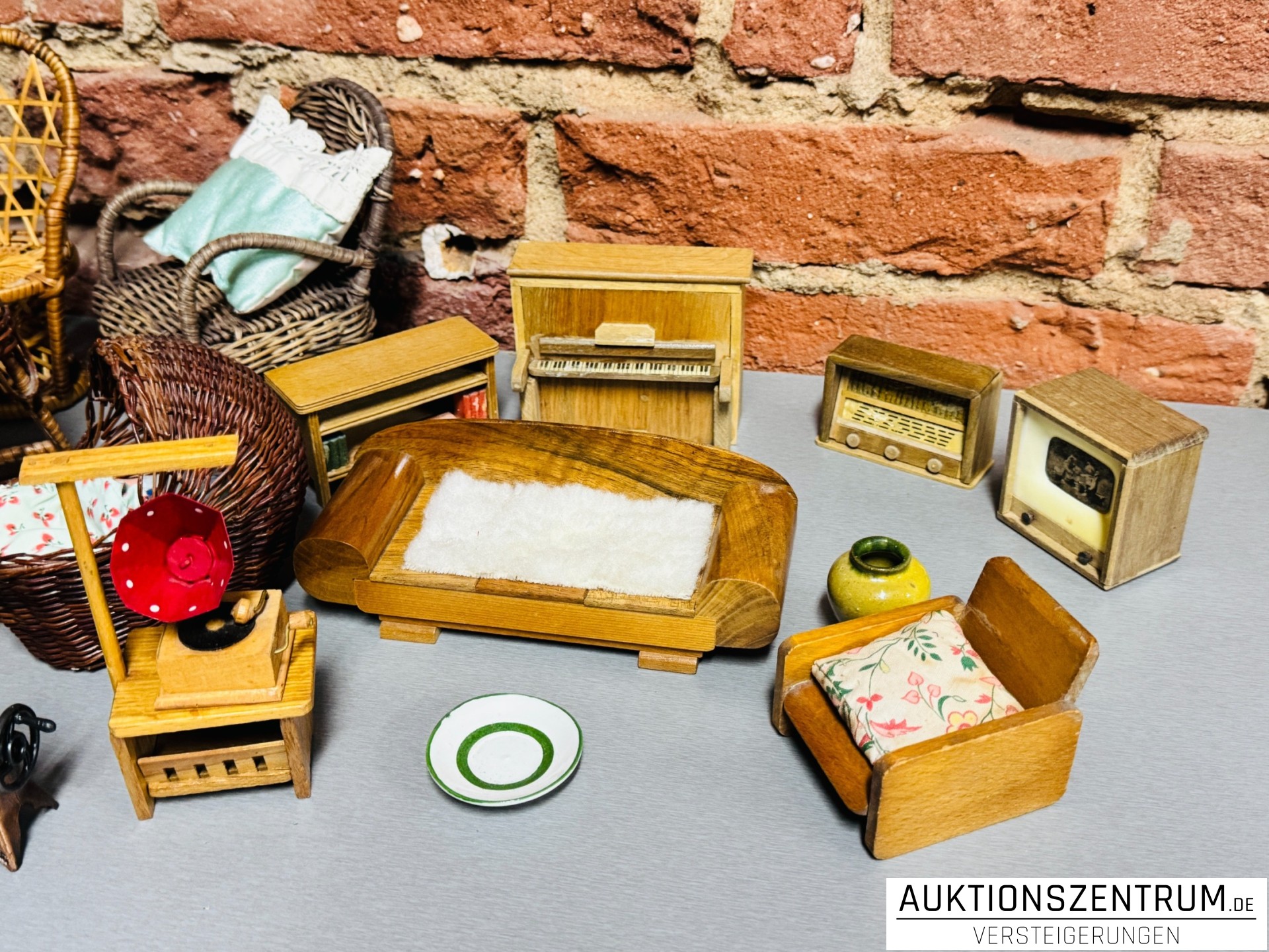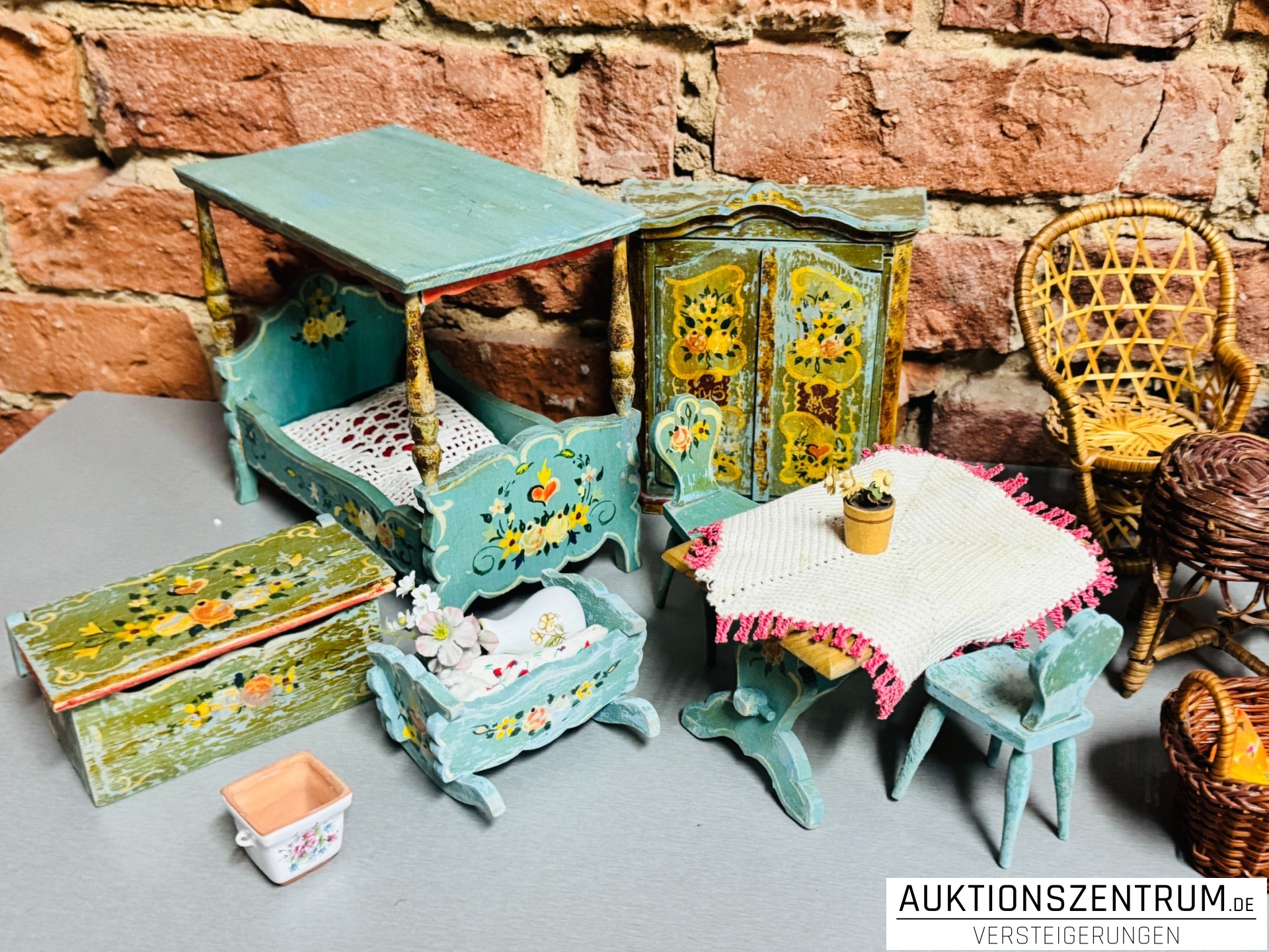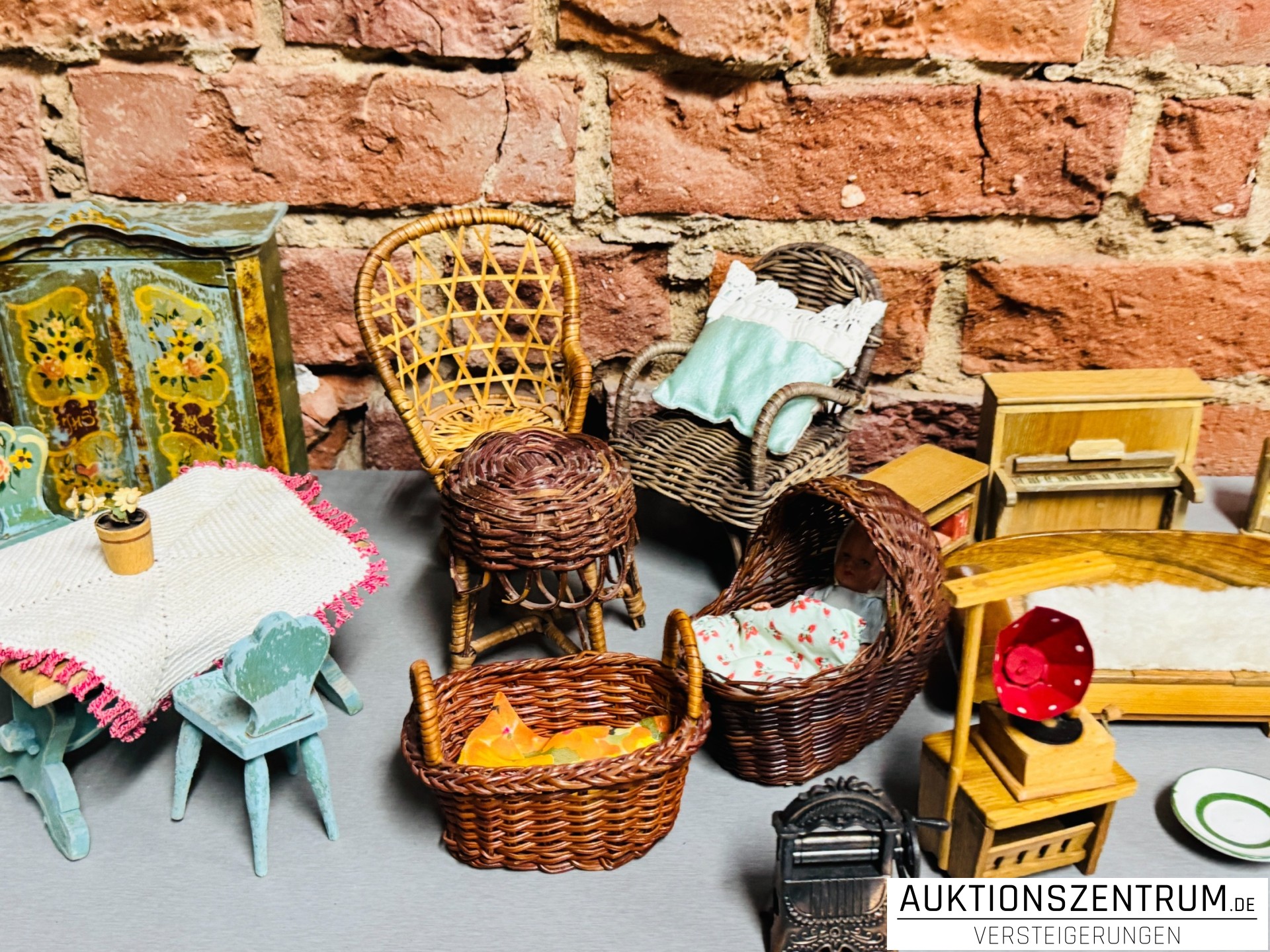 Los 100 - Historische, handbemalte & geflochtene Puppenstuben-Möbel