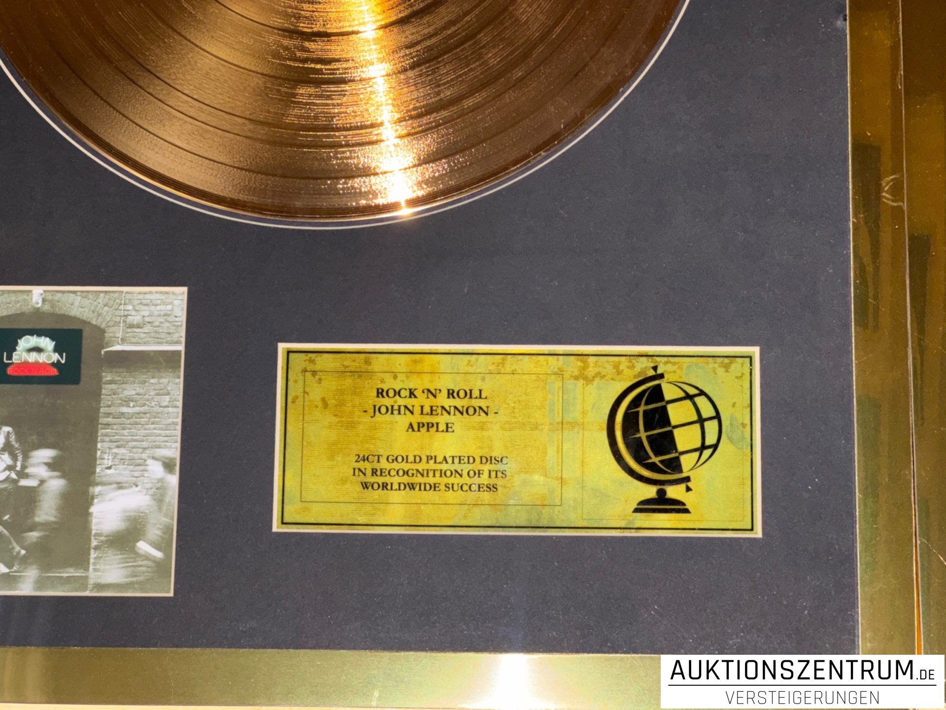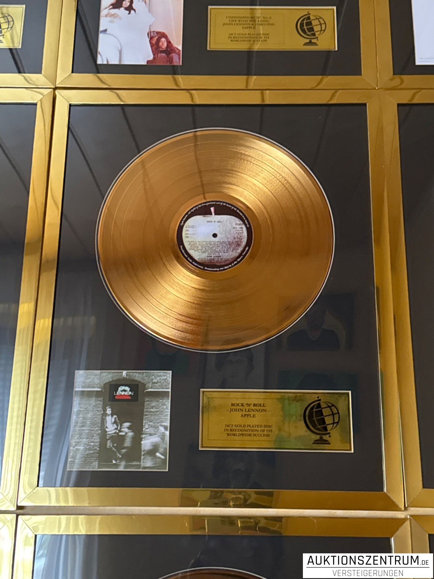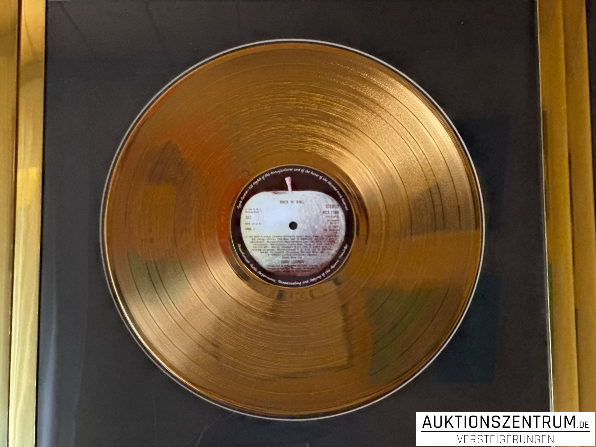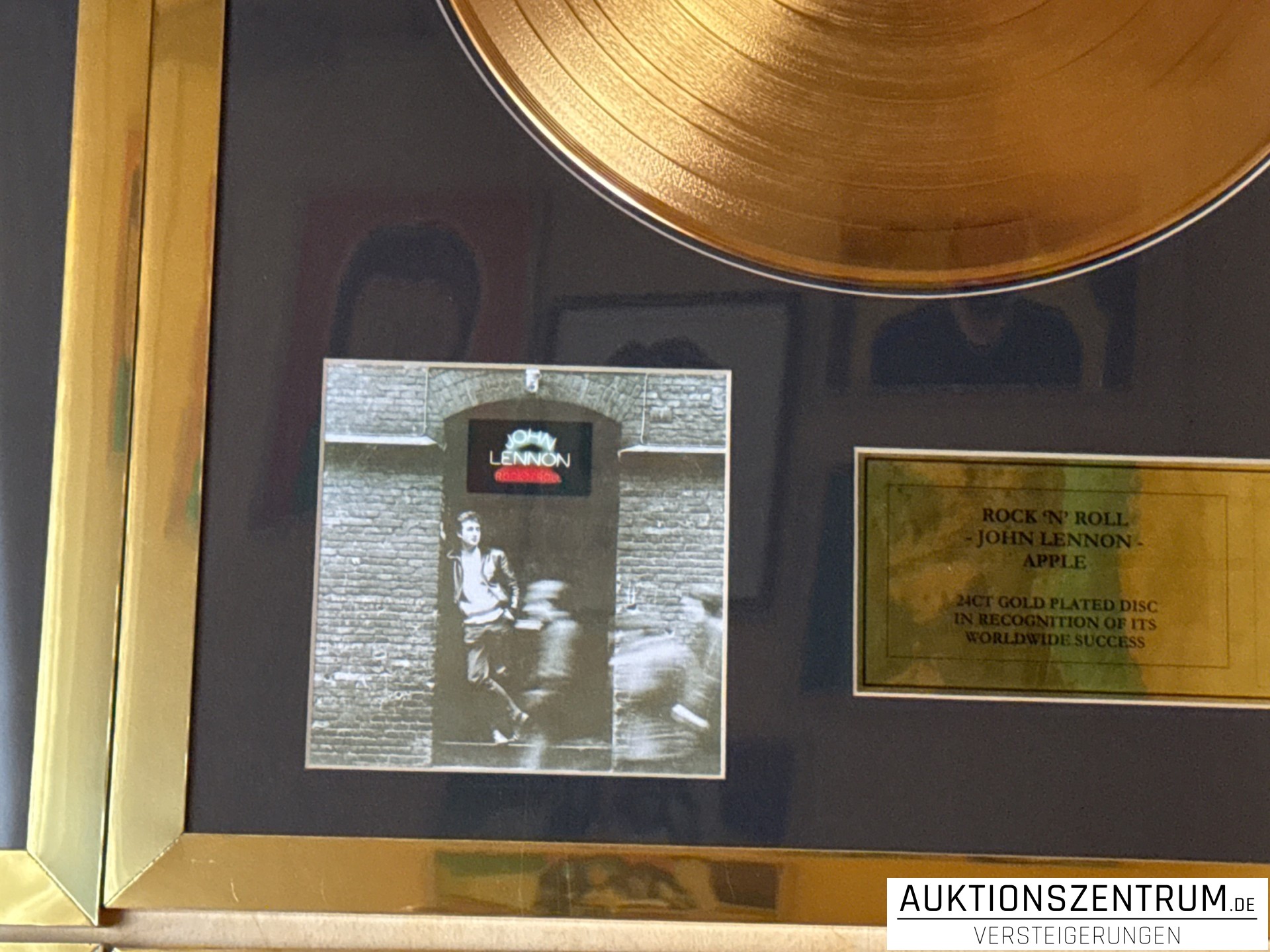 Los 208 - John Lennon, Rock'N'Roll, Apple, 24K Gold Plated Disc: LP Award Display