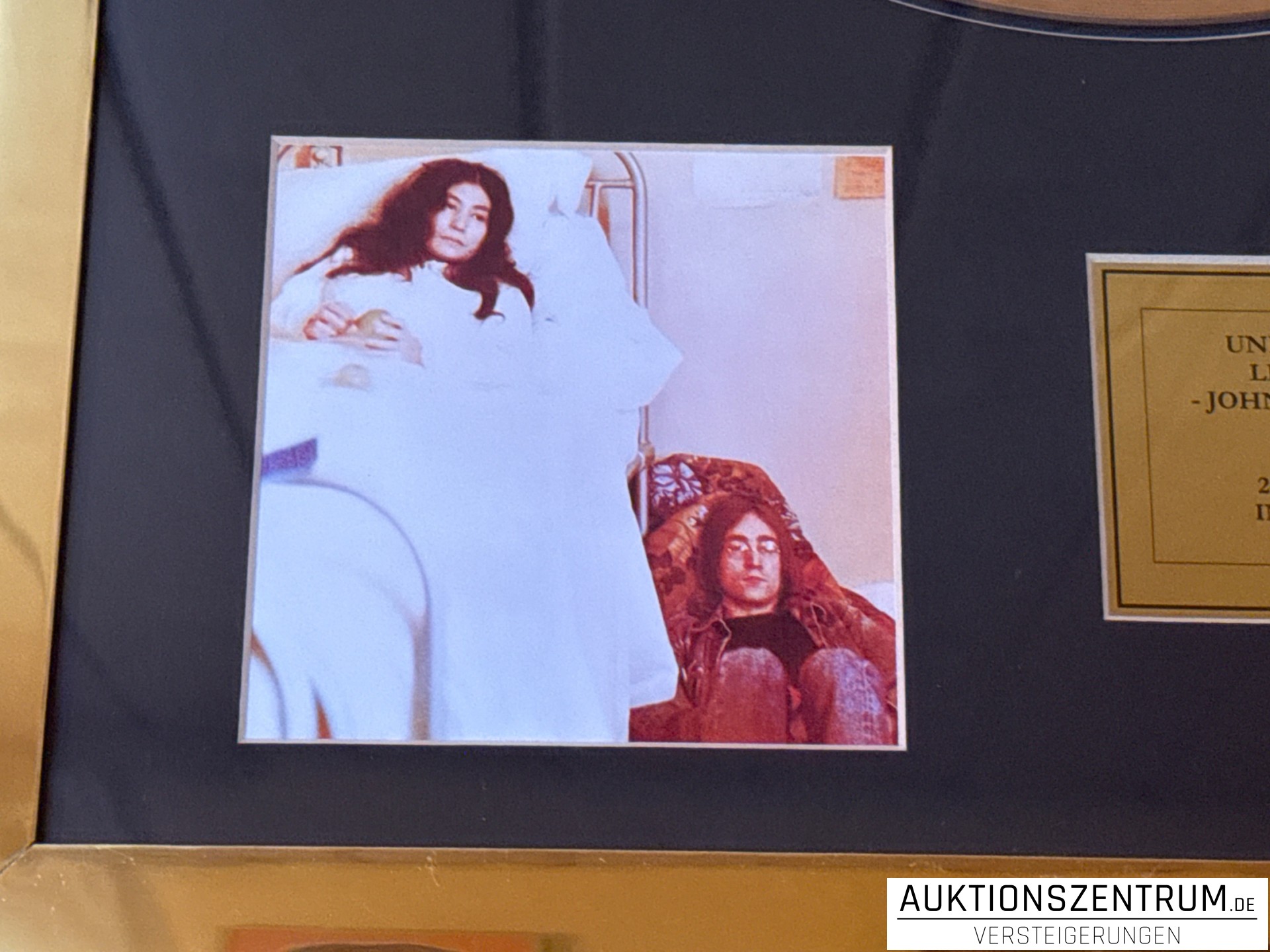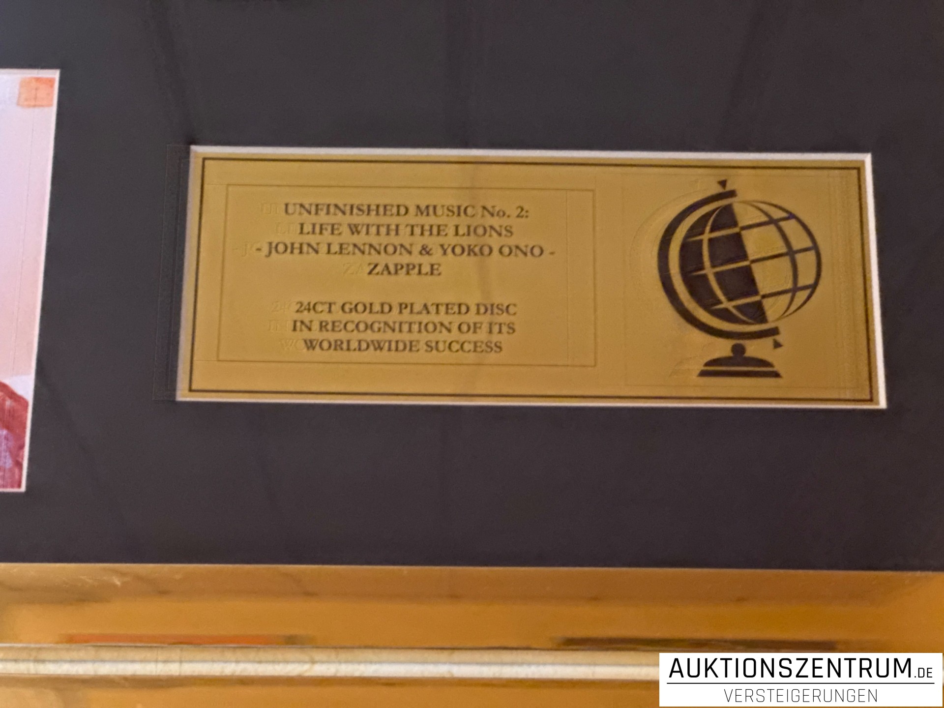 Los 203 - John Lennon, Unfinished Music Nr. 2, Live With The Lions, Zapple, 24K Gold Plated Disc: LP Award Display