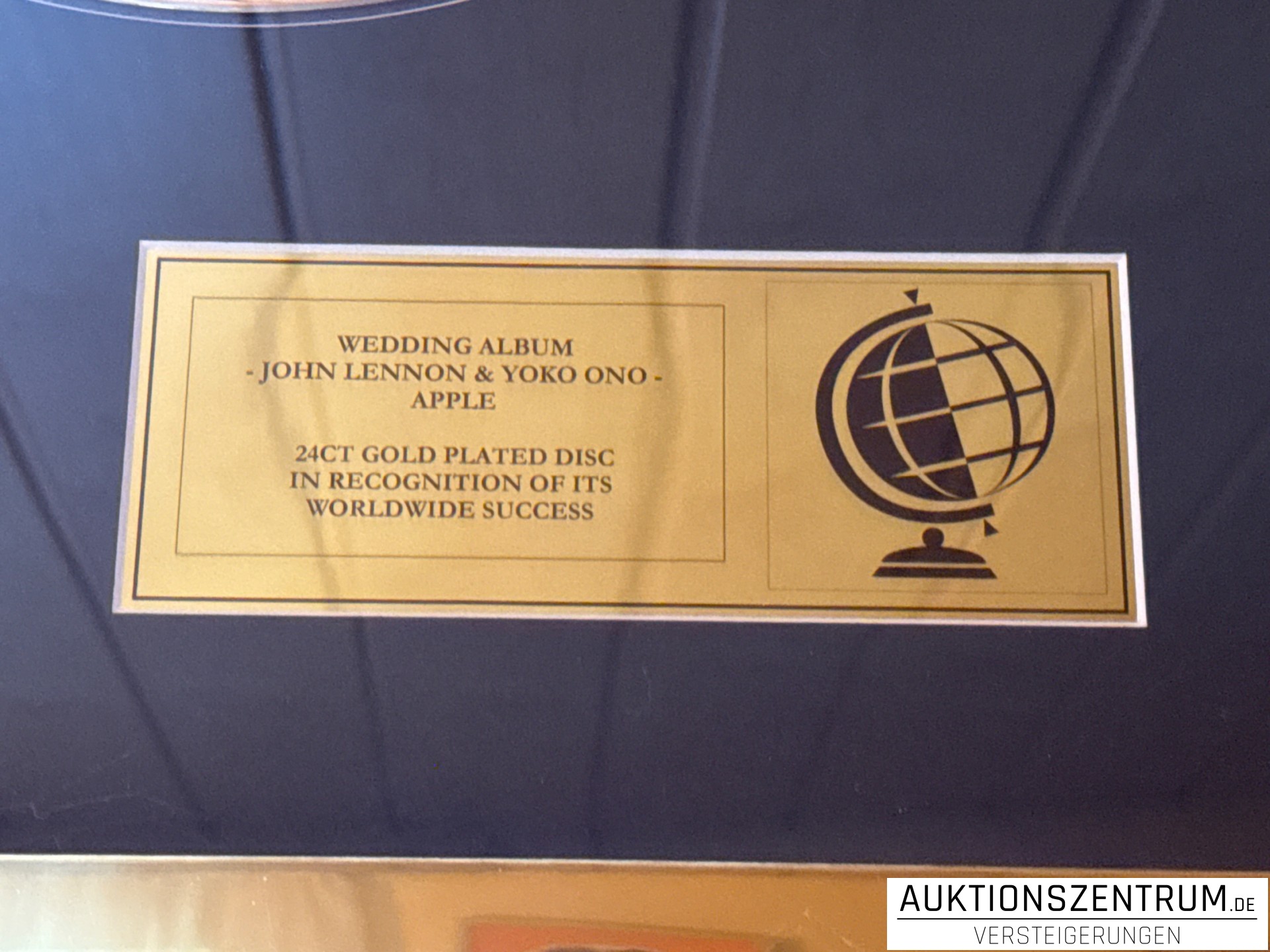 Los 202 - John Lennon, Wedding Album, Apple, 24K Gold Plated Disc: LP Award Display