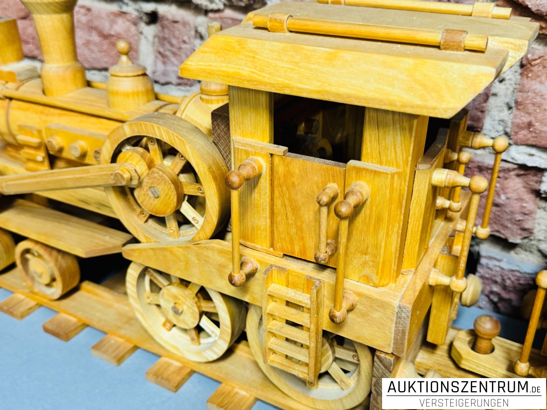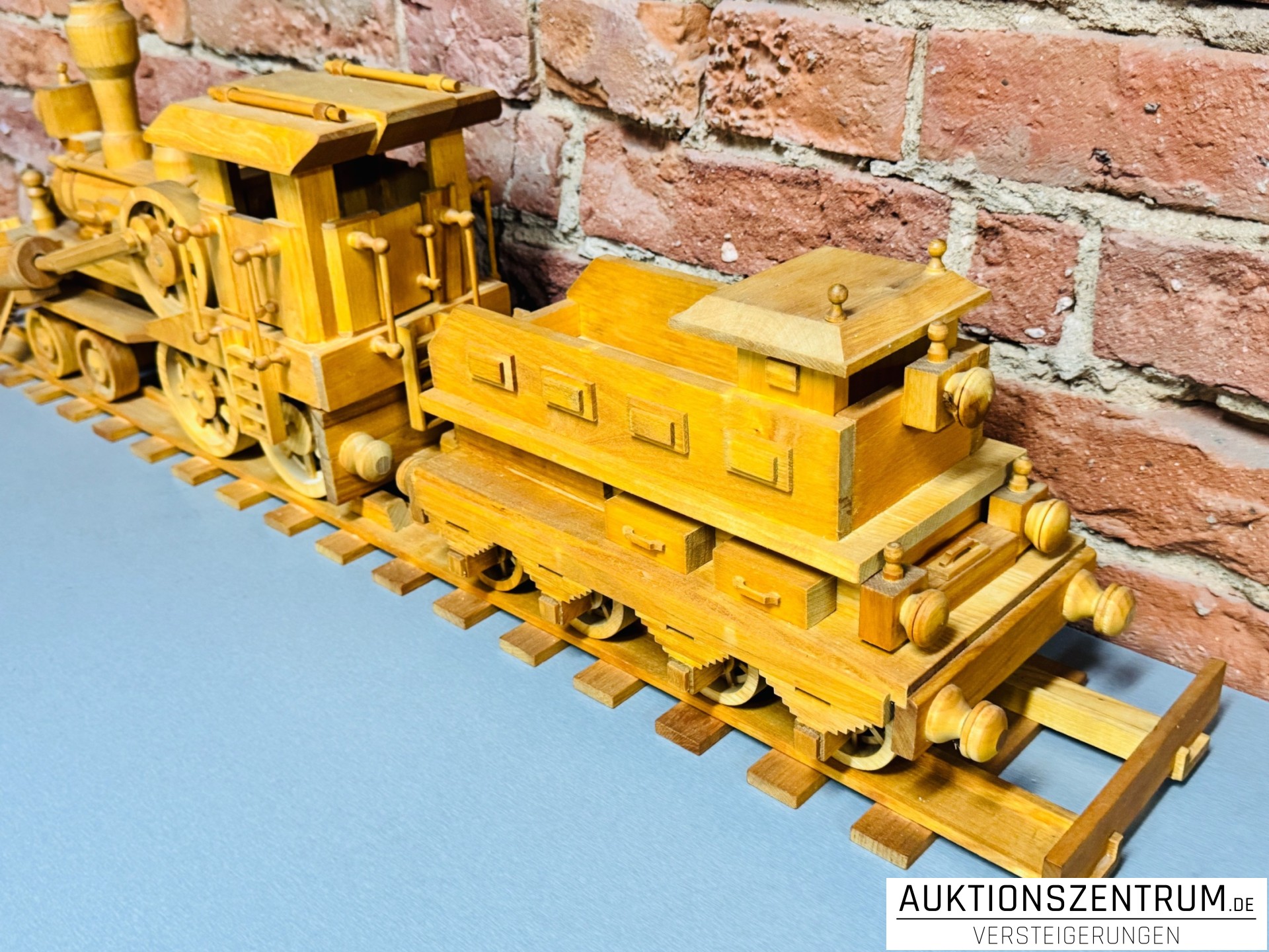 Lokomotive mit Tender / Dampflok Eisenbahn mit Wagon Holz-Modell