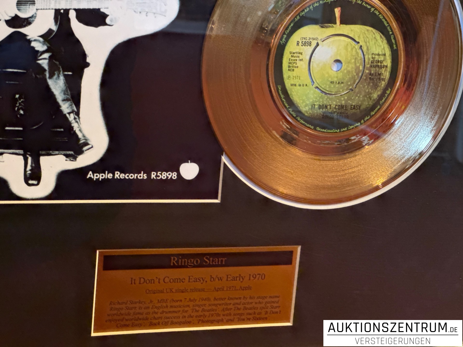 Gerahmte Gold-Award-Gedenkausgabe zur legendären Single von Ringo Starr.
