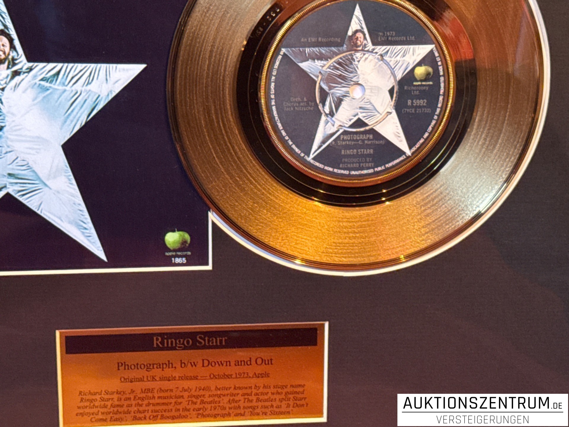 Gerahmte Gold-Award-Gedenkausgabe zur legendären Single von Ringo Starr.