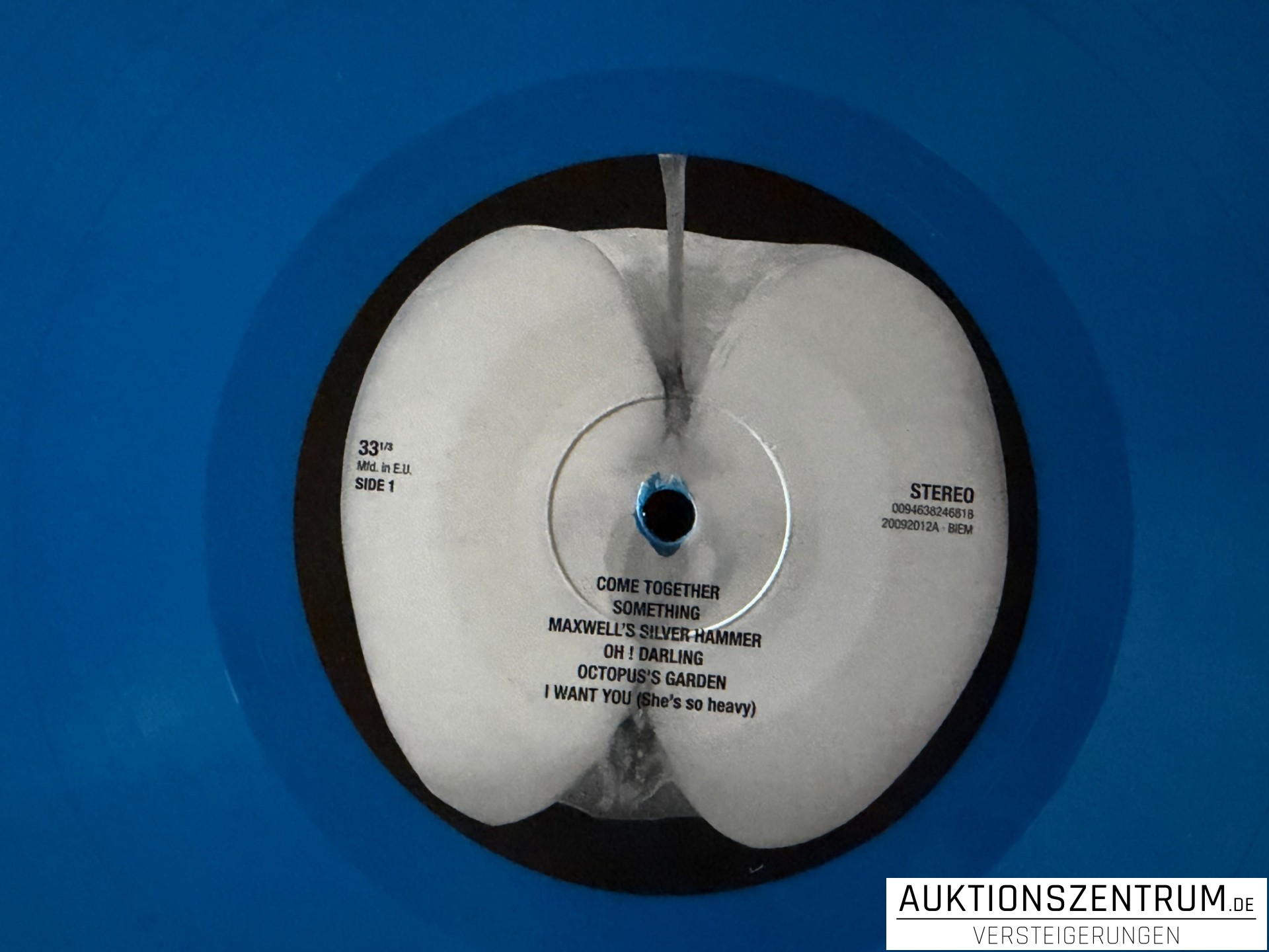 Die Langspielplatte „Abbey Road“ in der Colored Vinyl Version blau.