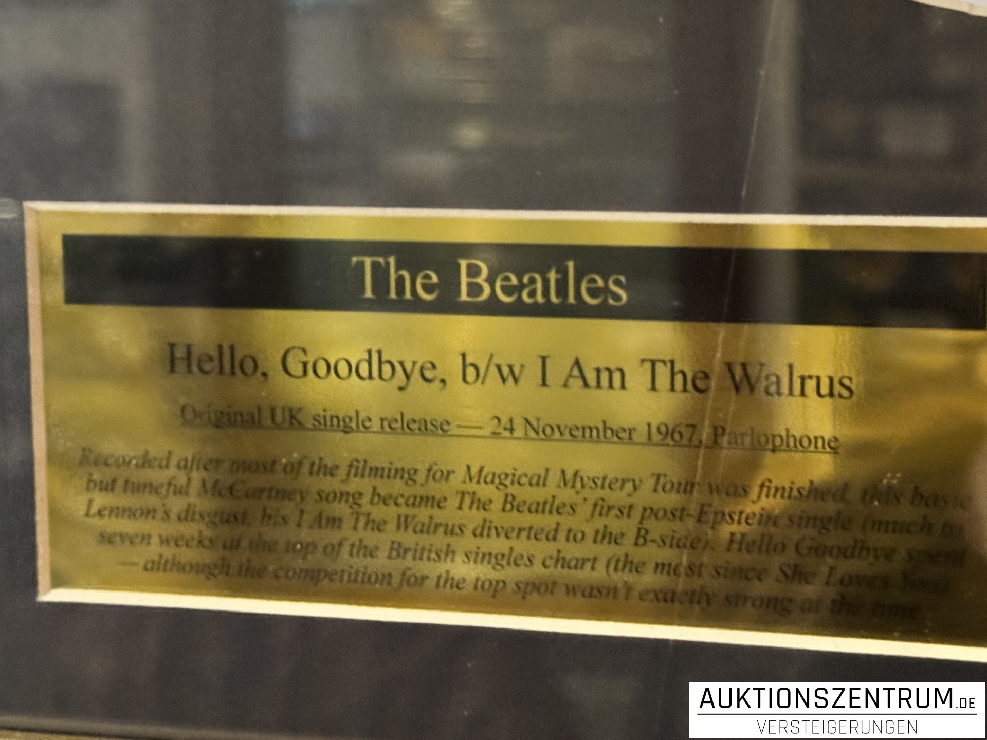 Gerahmte Gold-Award-Gedenkausgabe zur legendären Single der Beatles.