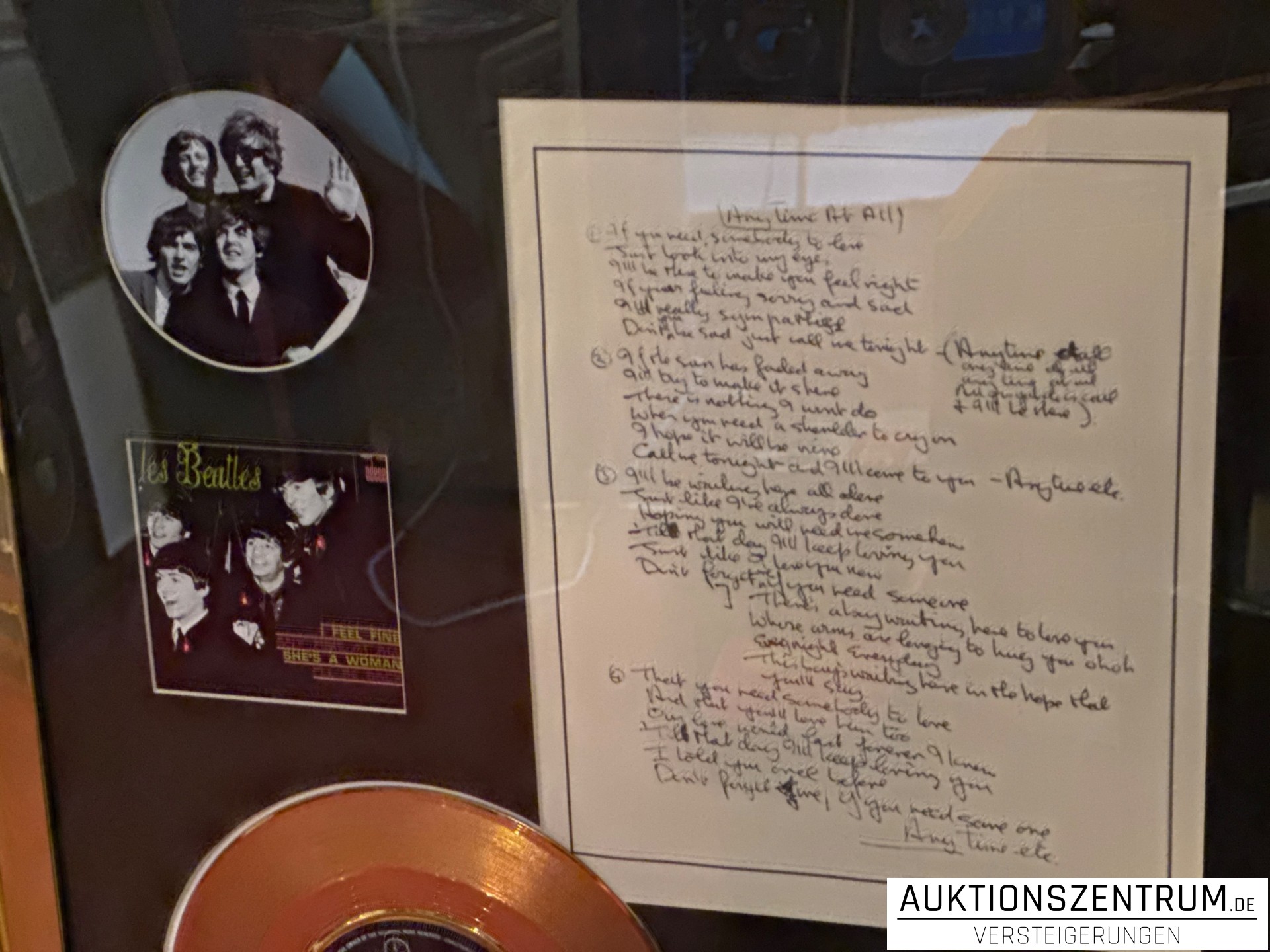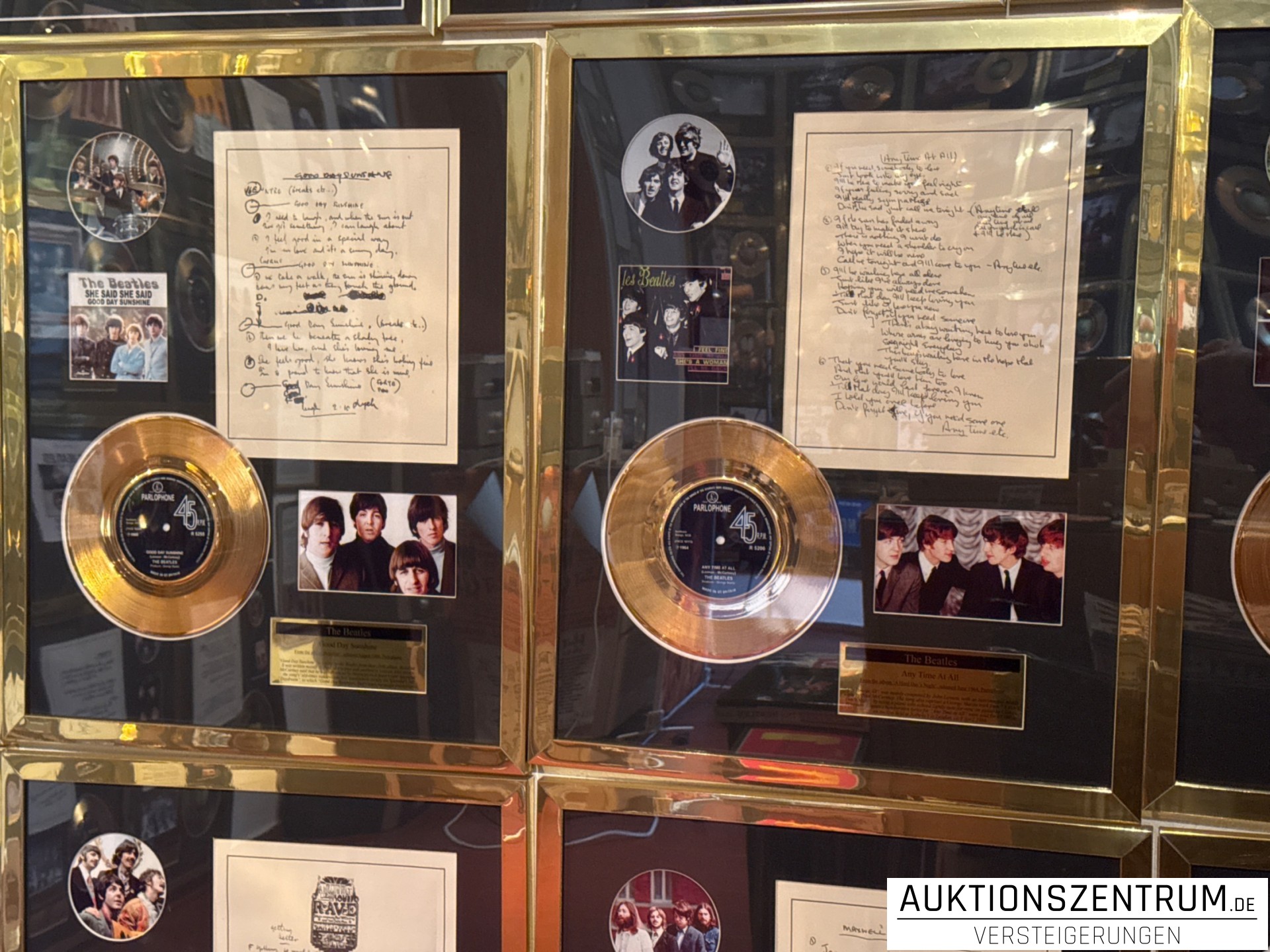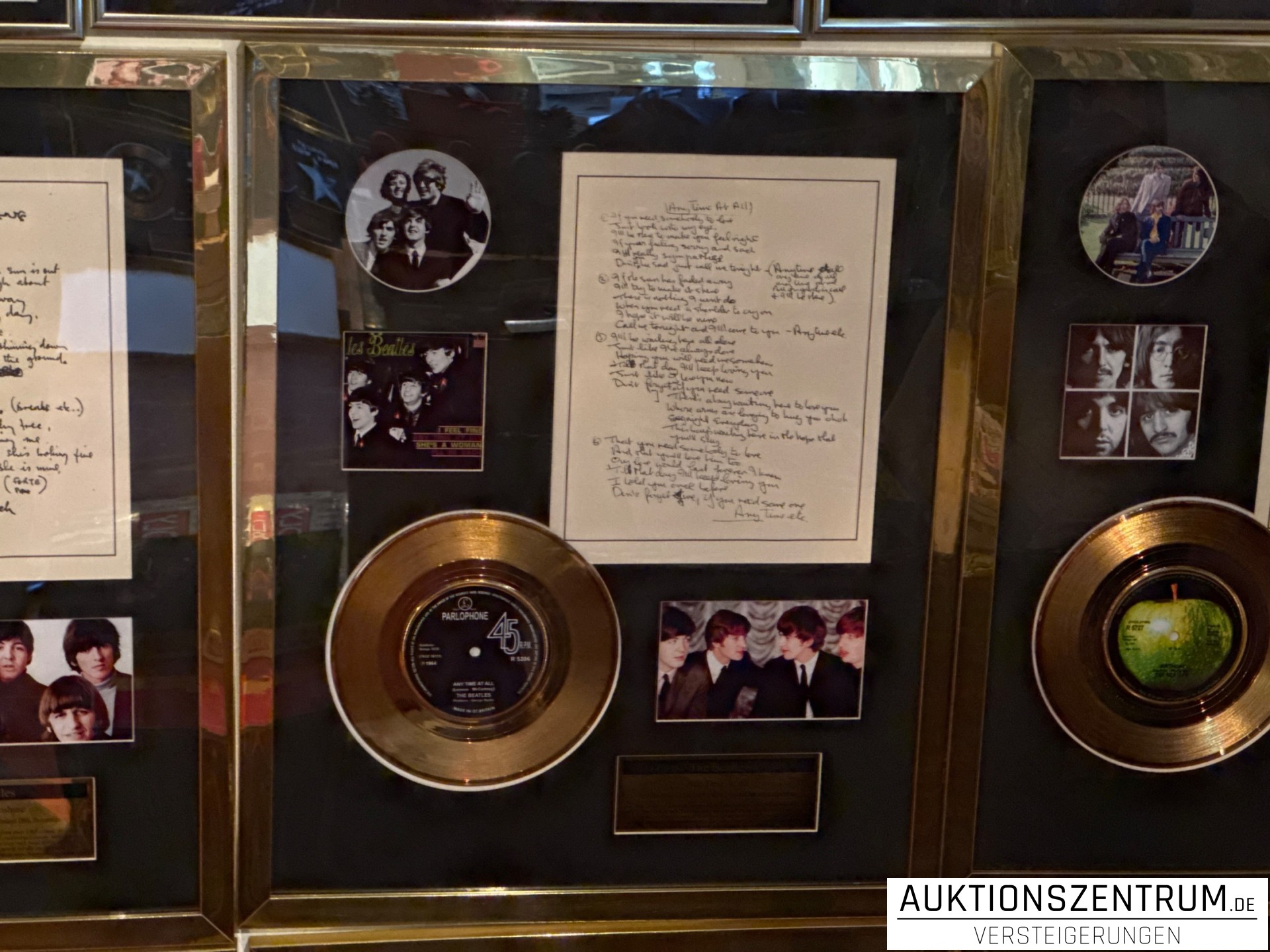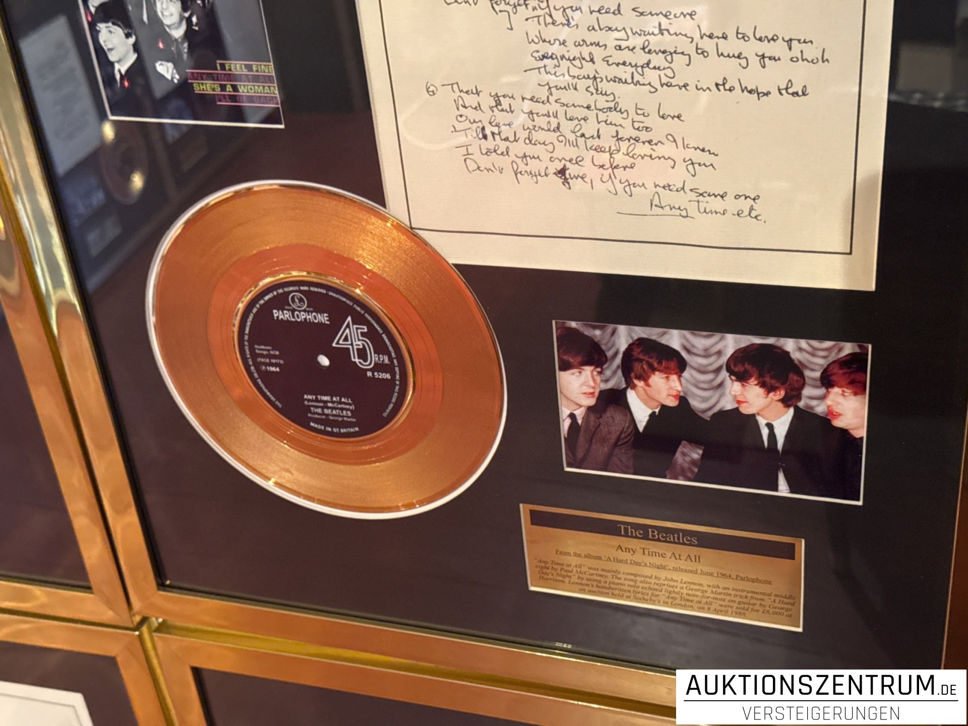 The Beatles Gold Award Display + Songtext: Any Time At All, Parlophone Vinyl