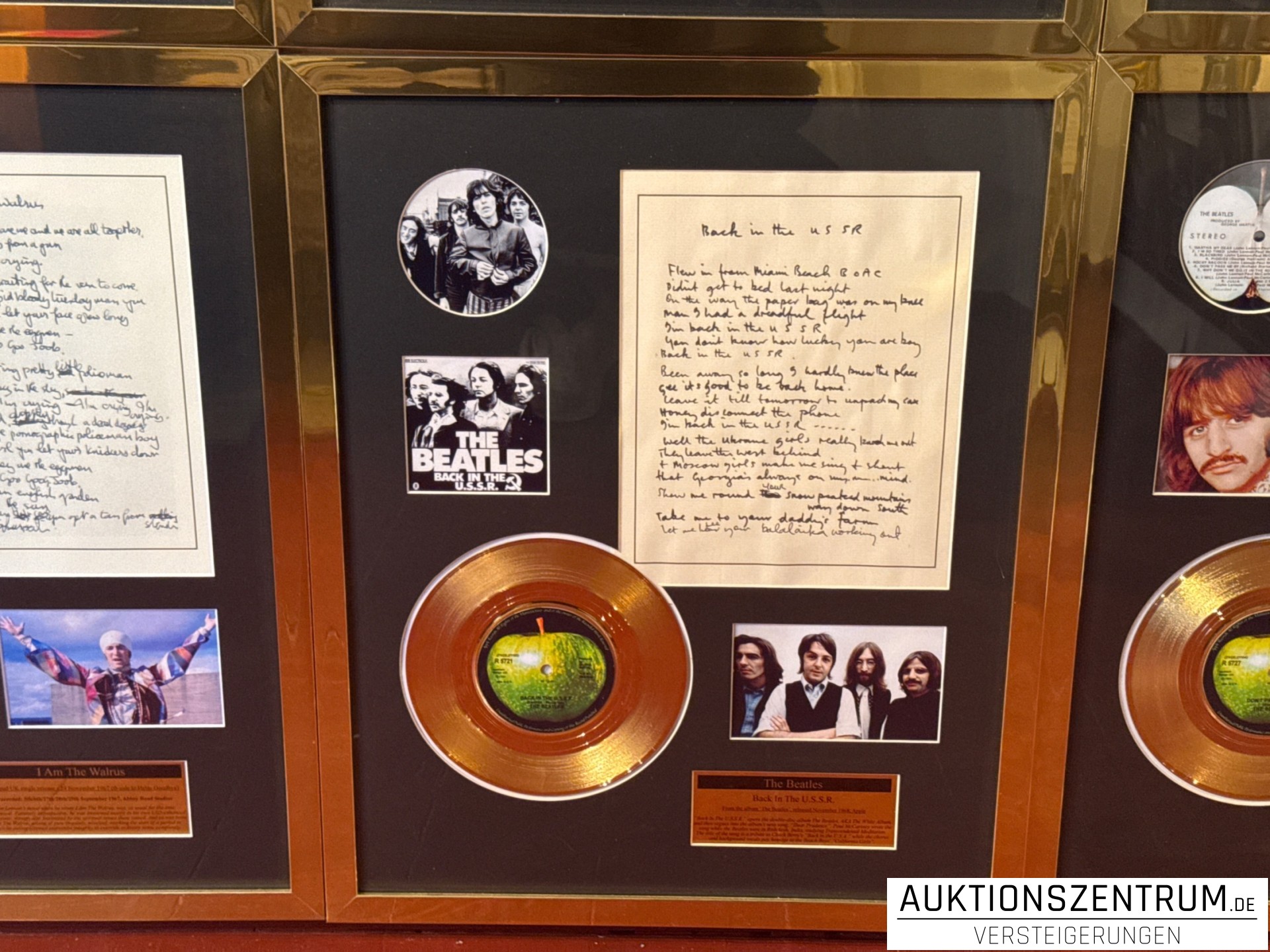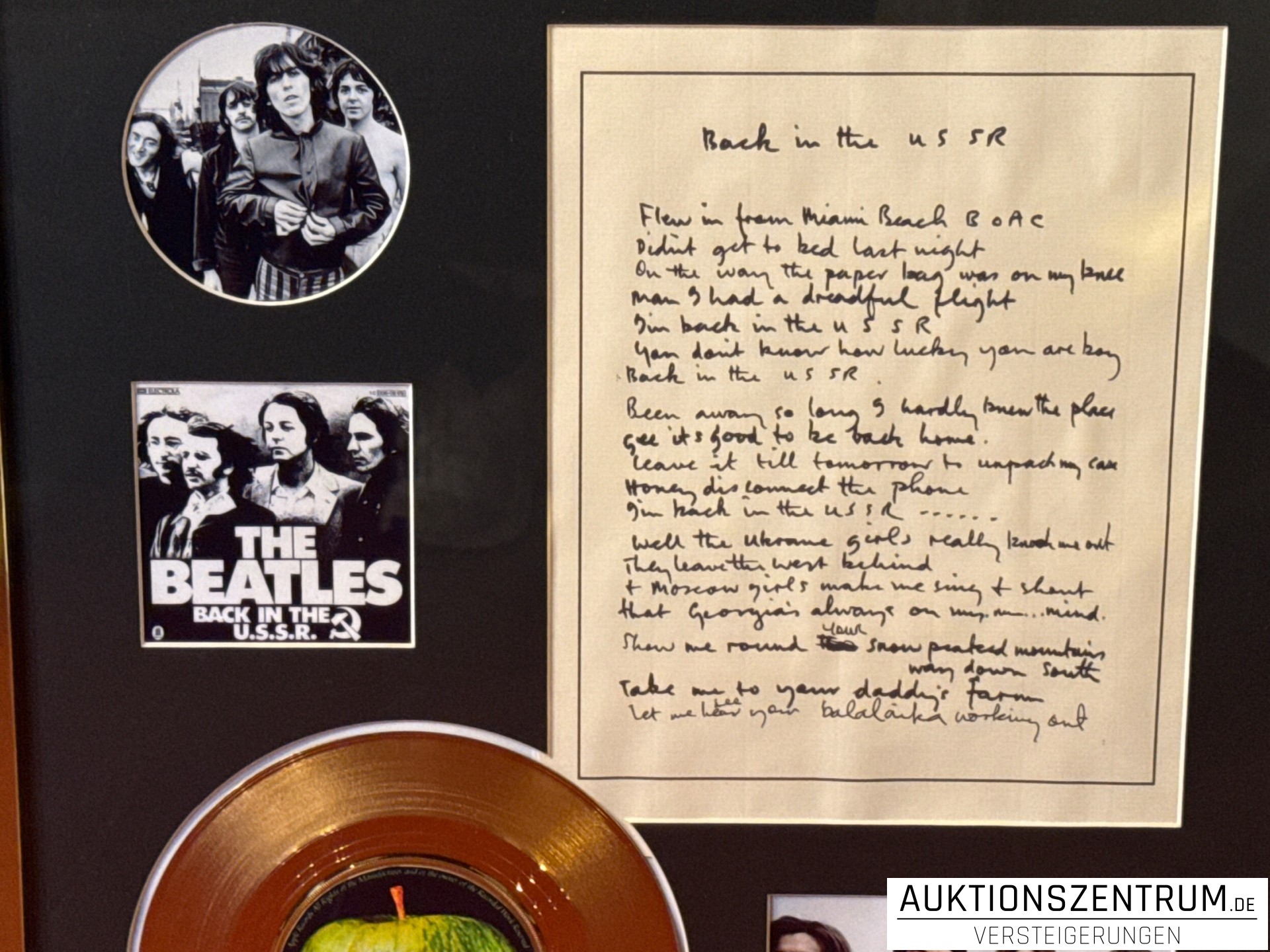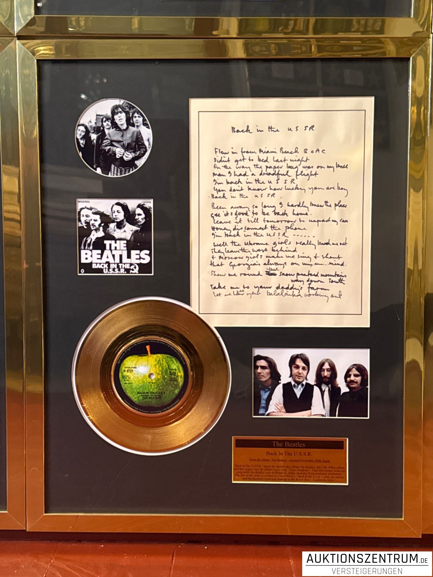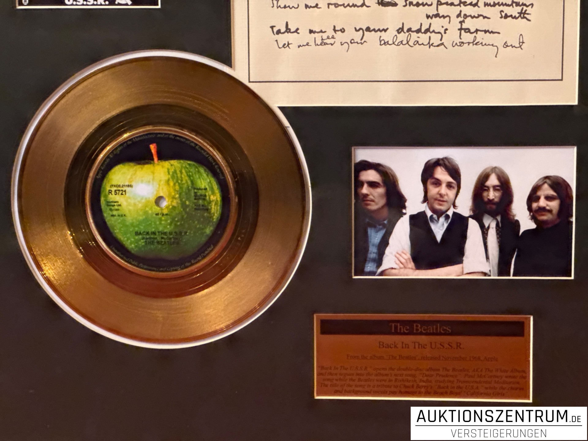 The Beatles Gold Award Display + Songtext: Back In The U.S.S.R, Apple Vinyl