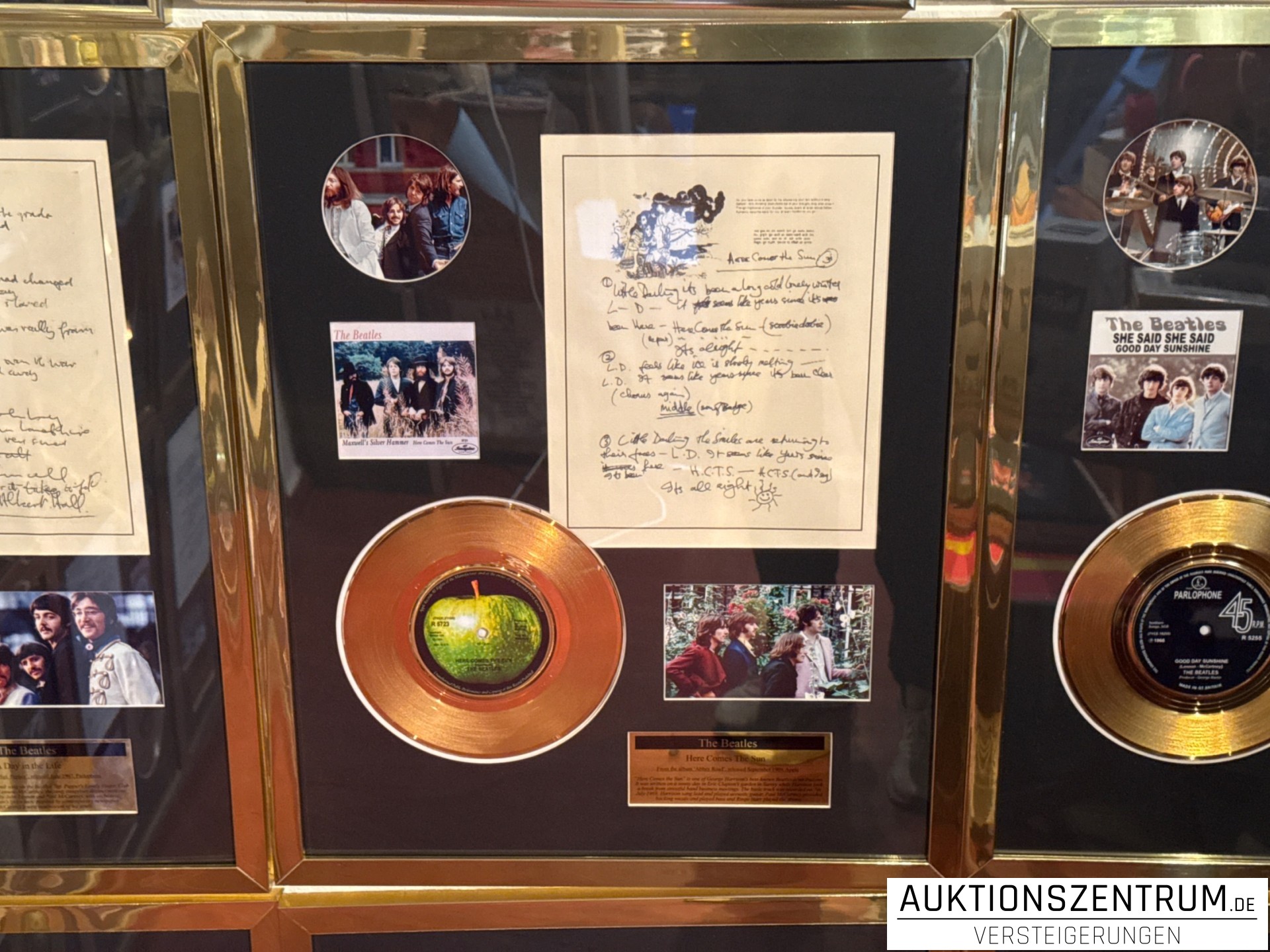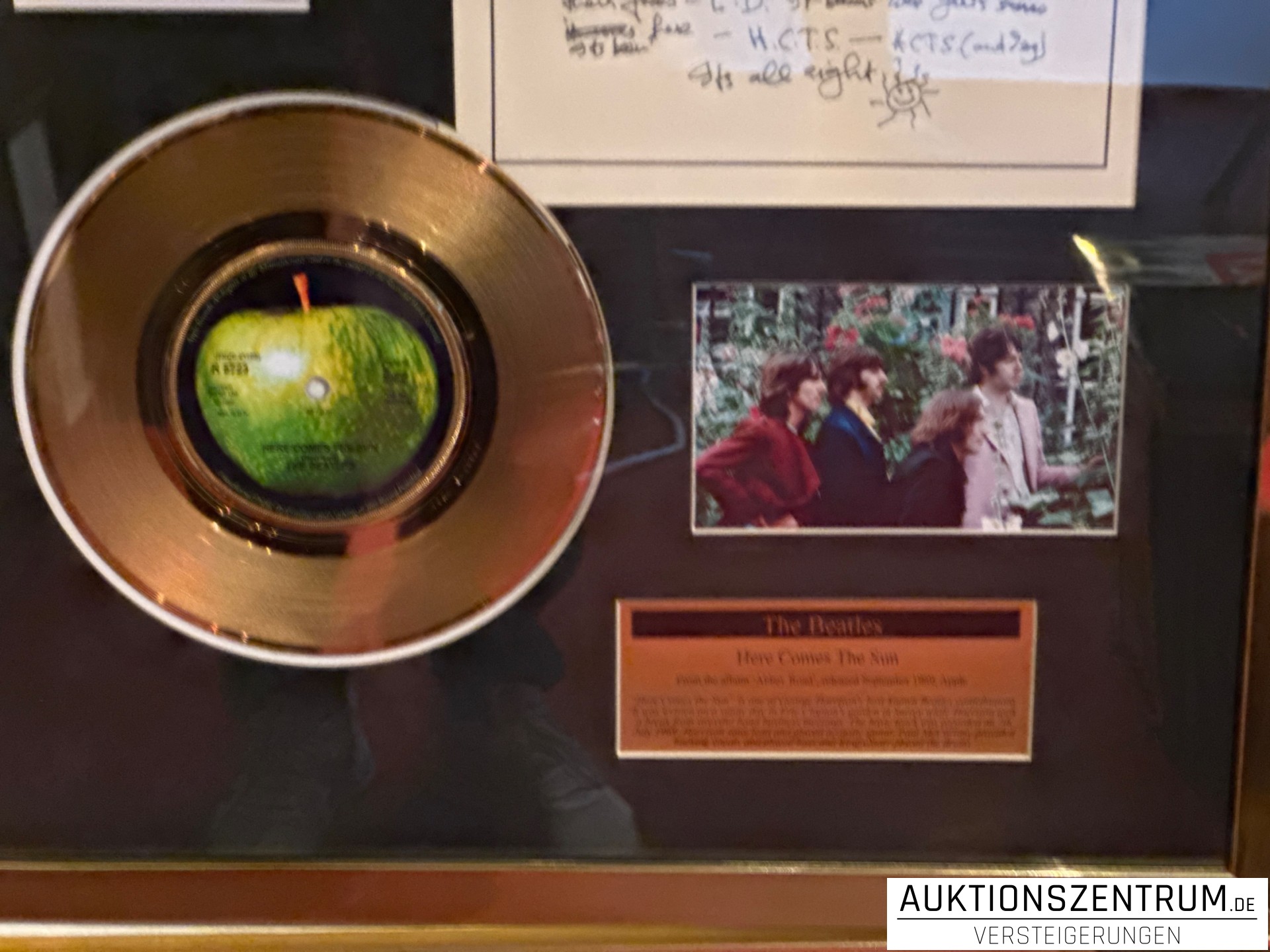 Los 7 - The Beatles Gold Award Display + Songtext: Here Come The Sun, Apple Vinyl
