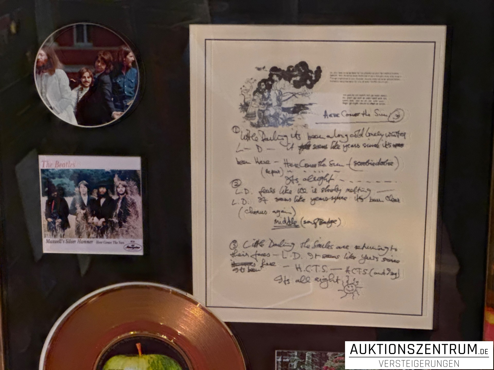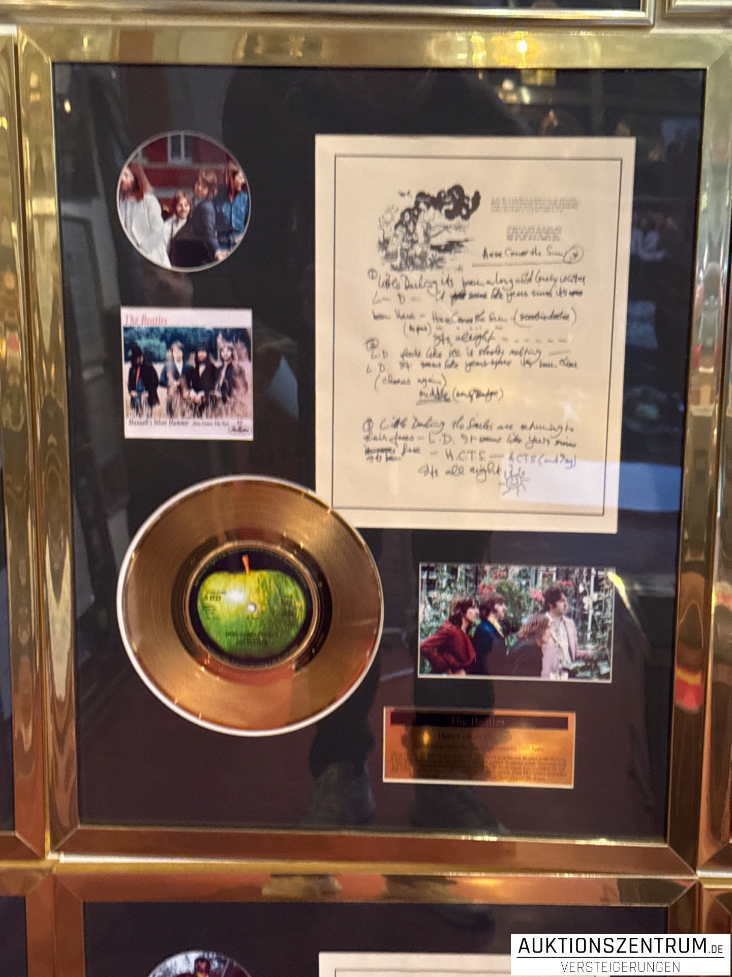 The Beatles Gold Award Display + Songtext: Here Come The Sun, Apple Vinyl