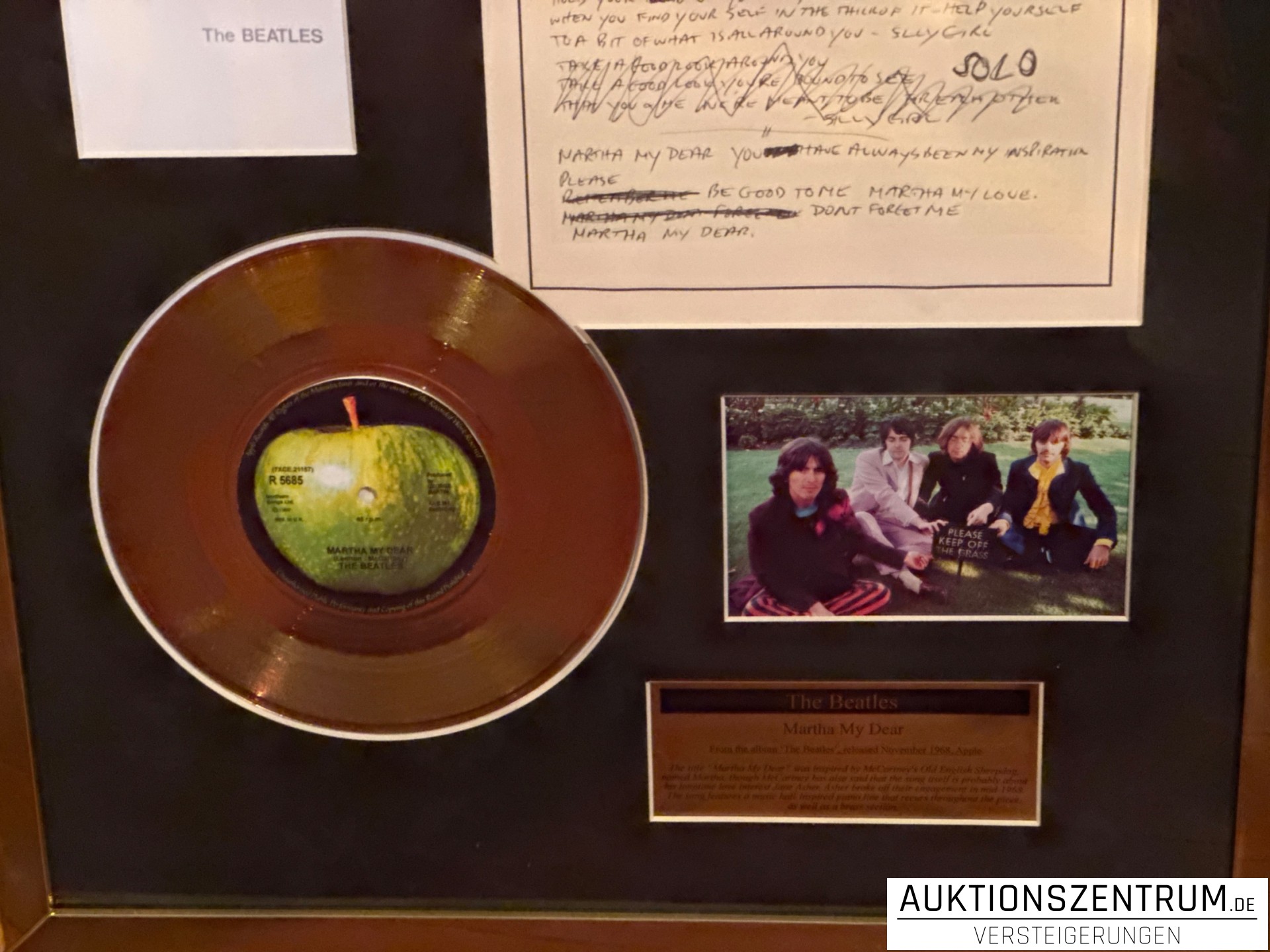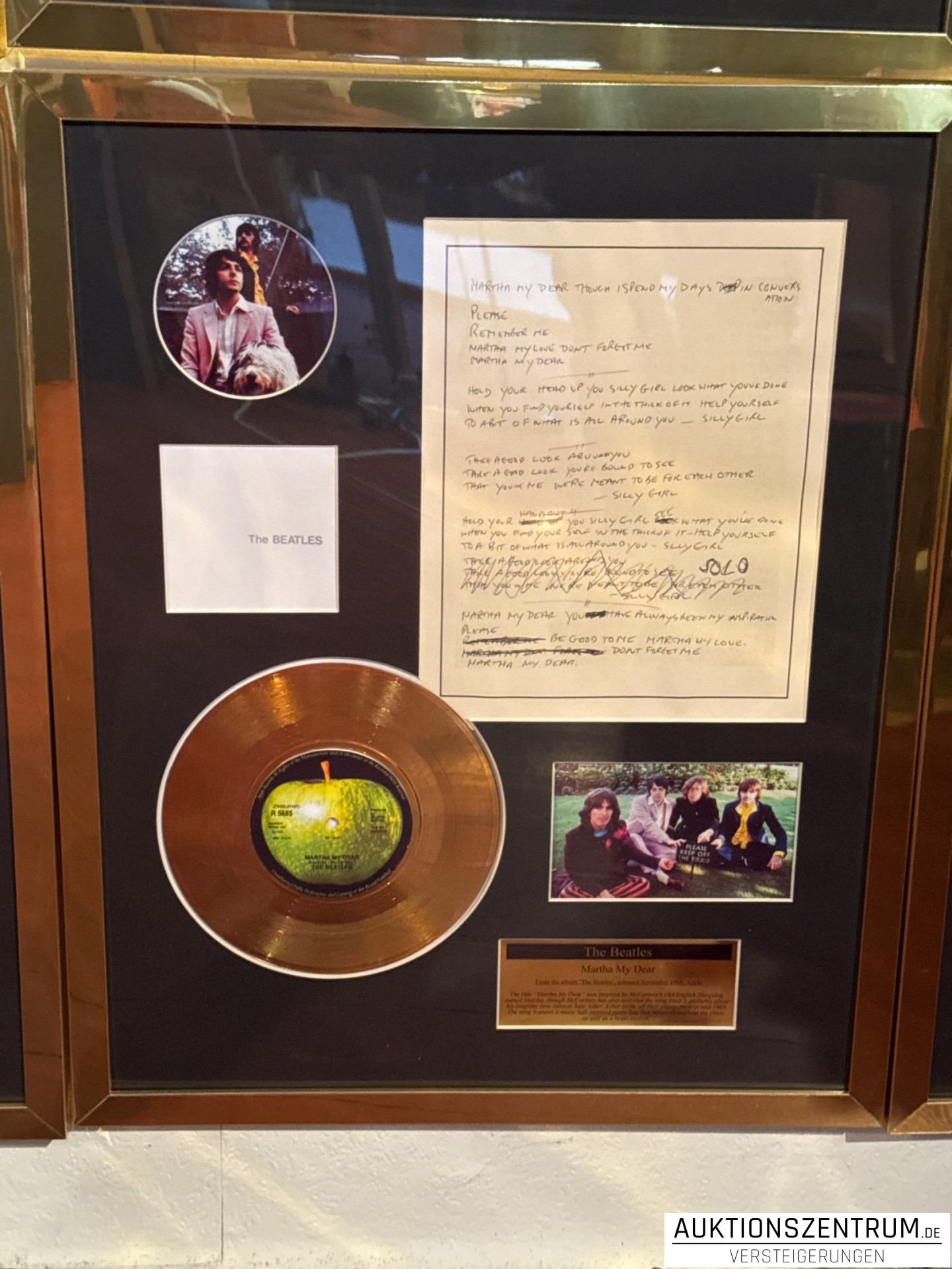 The Beatles Gold Award Display + Songtext: Martha My Dear, Apple Vinyl