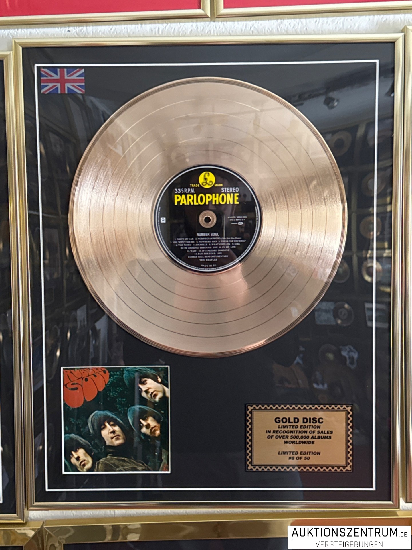 The Beatles Gold Disc Vinyl Display 8/50 - Rubber Soul Limited Edition