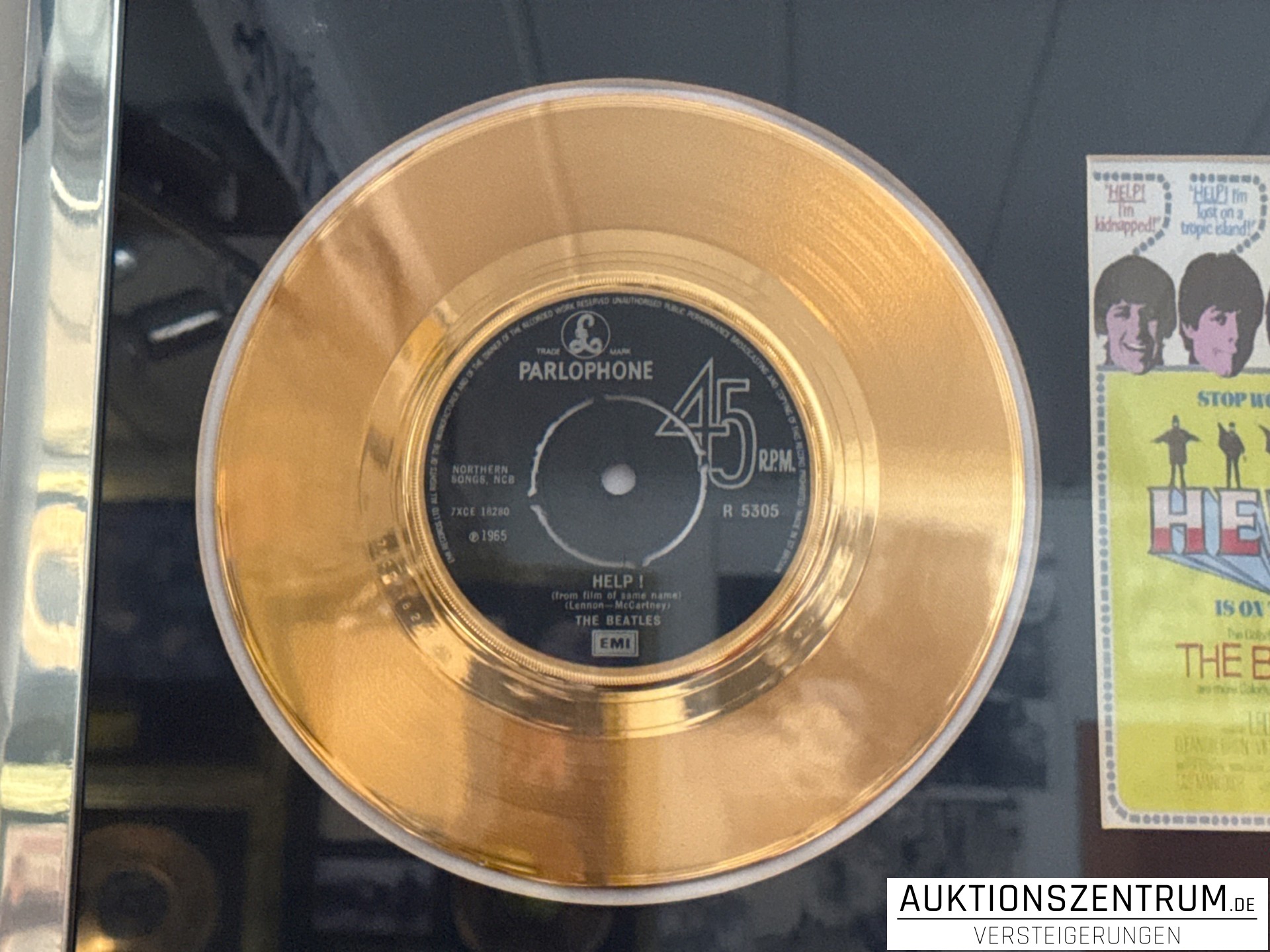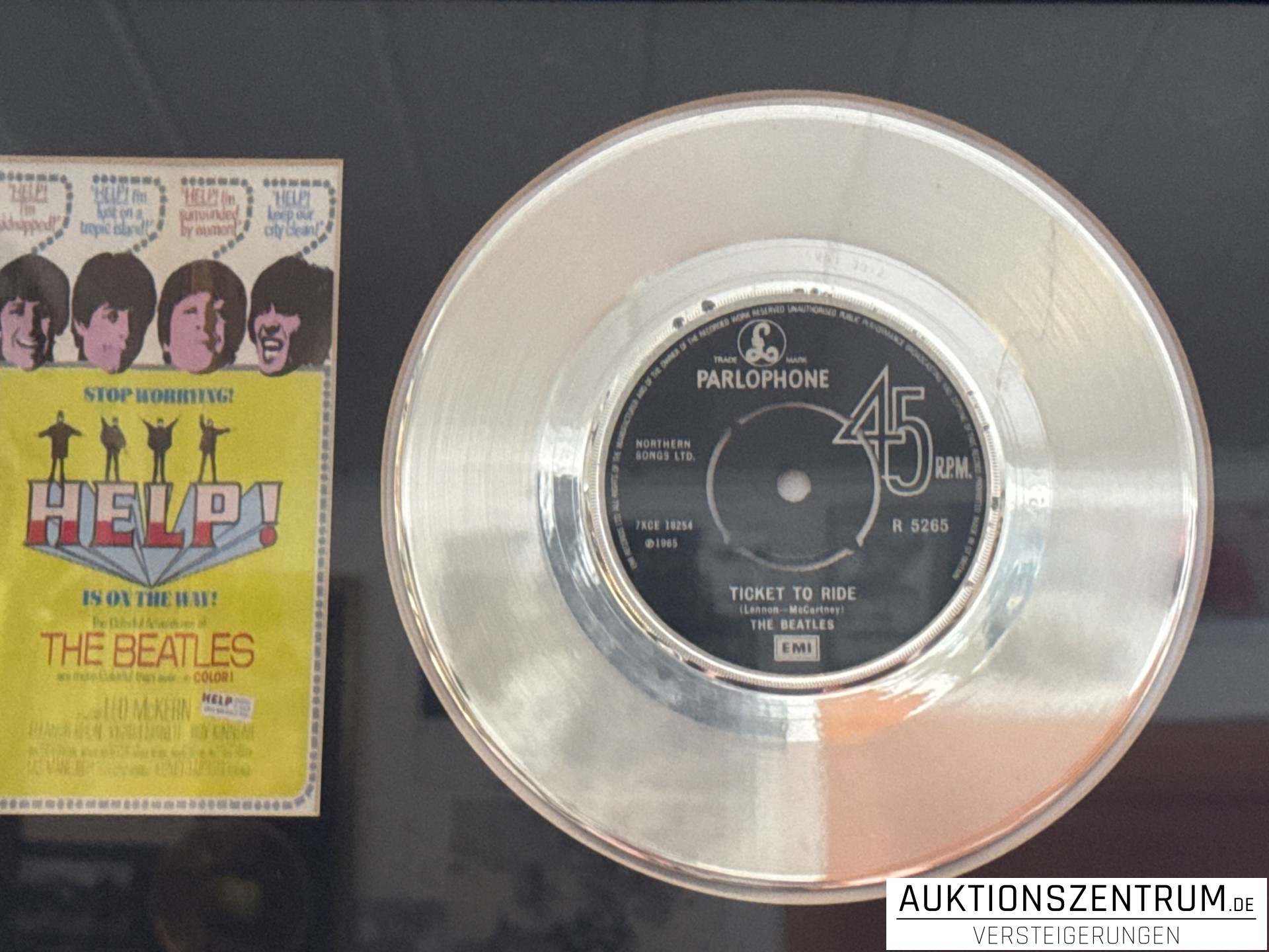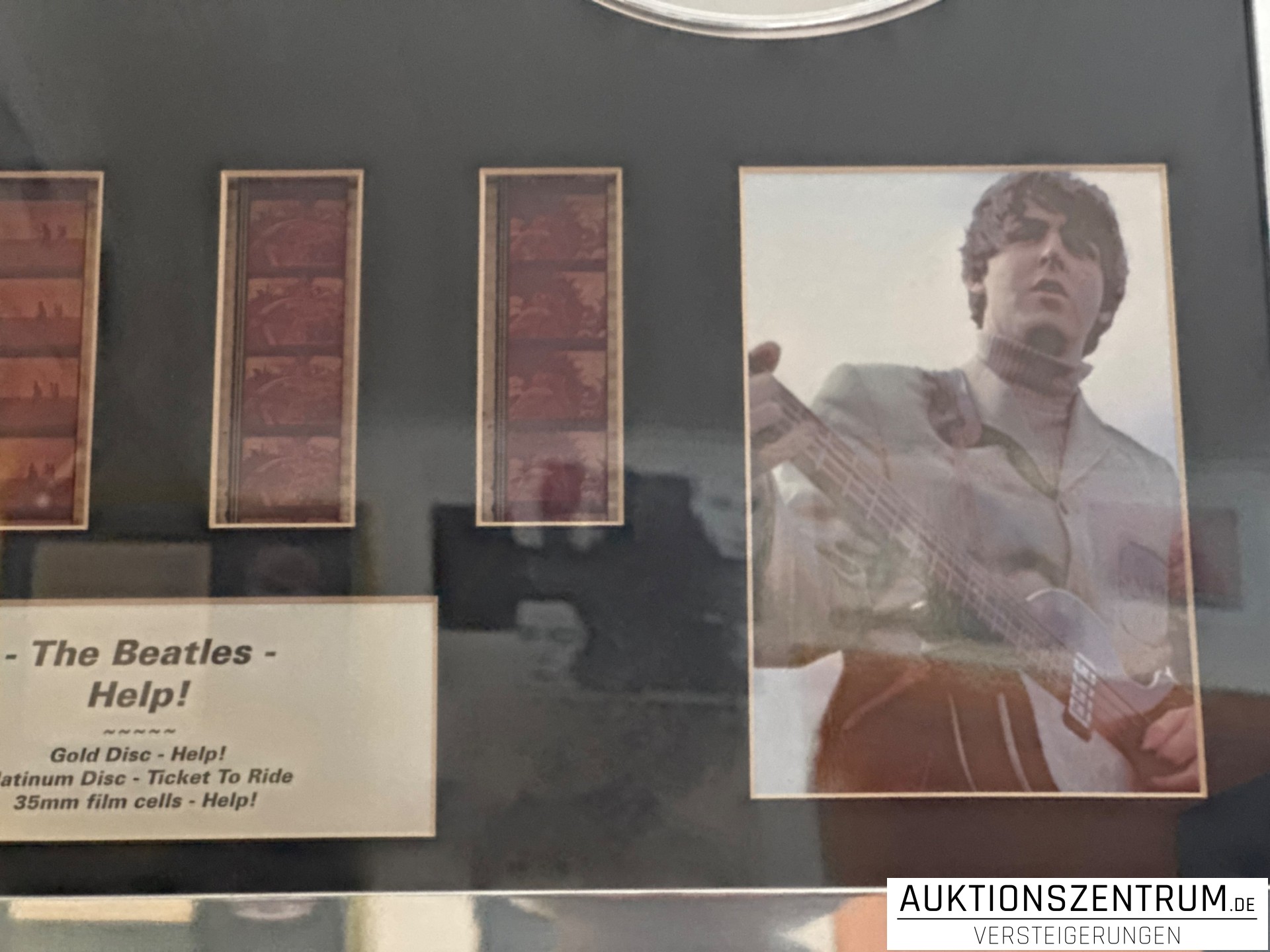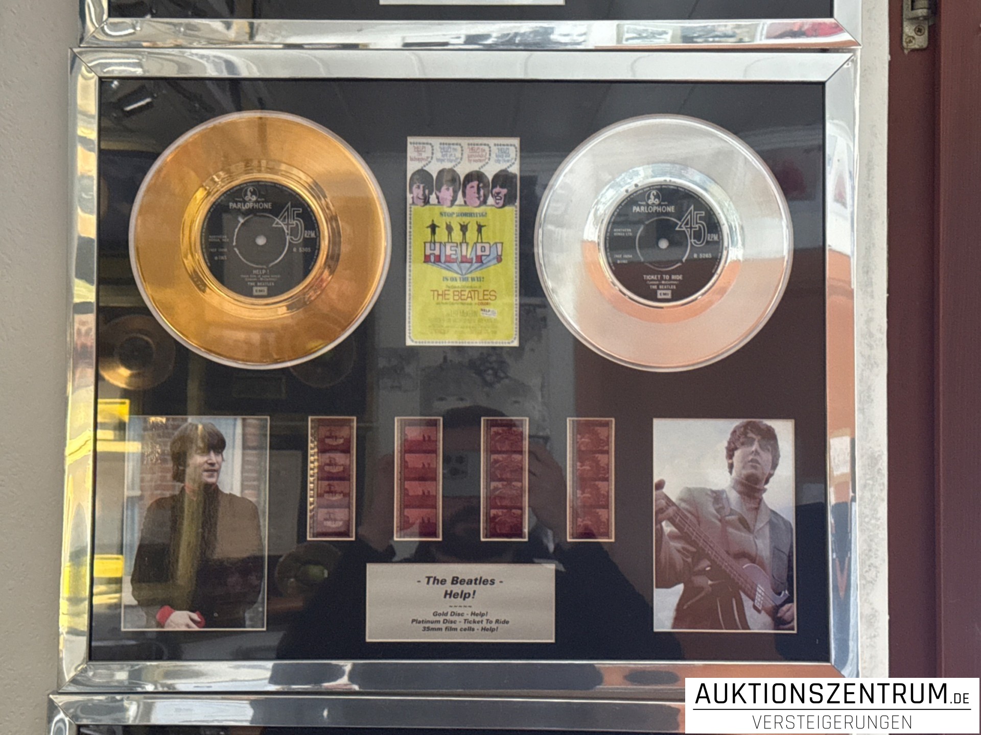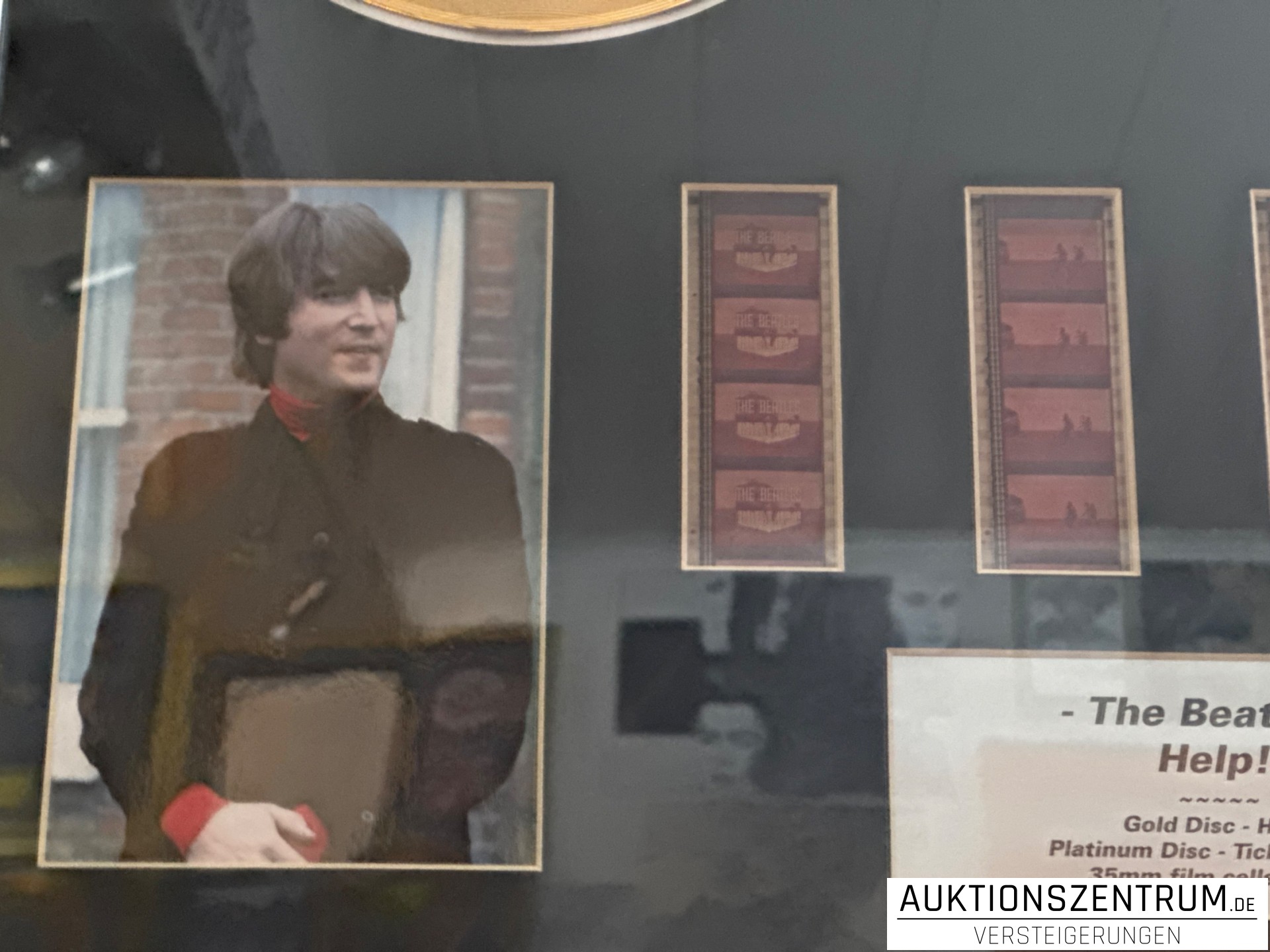Los 117 - The Beatles Gold & Platin Disc/Vinyl Award Display, Film Cell - Help! / Ticket To Ride