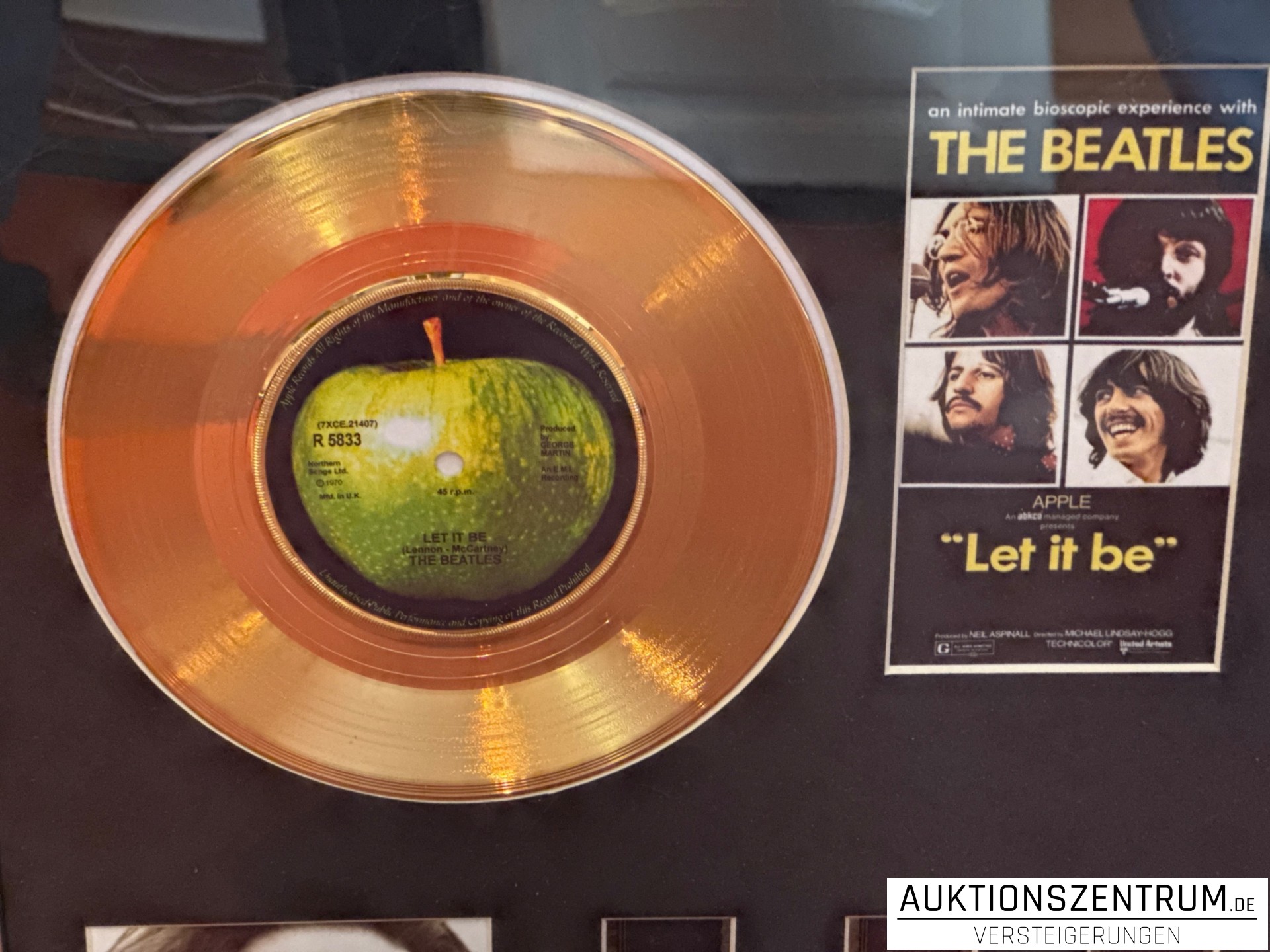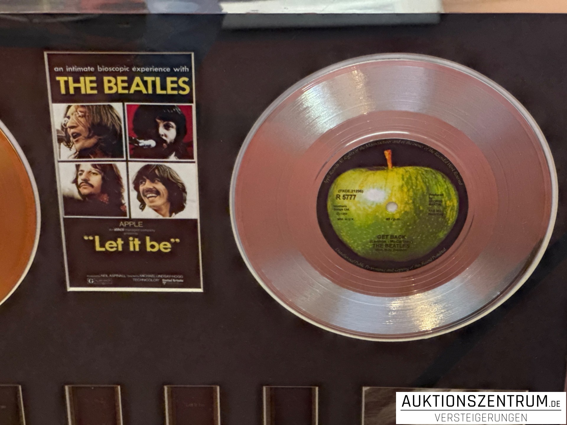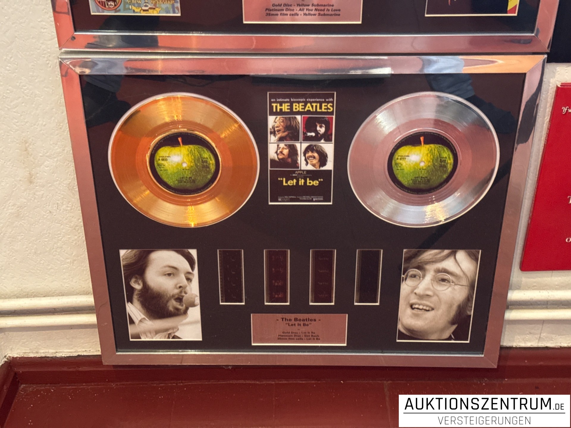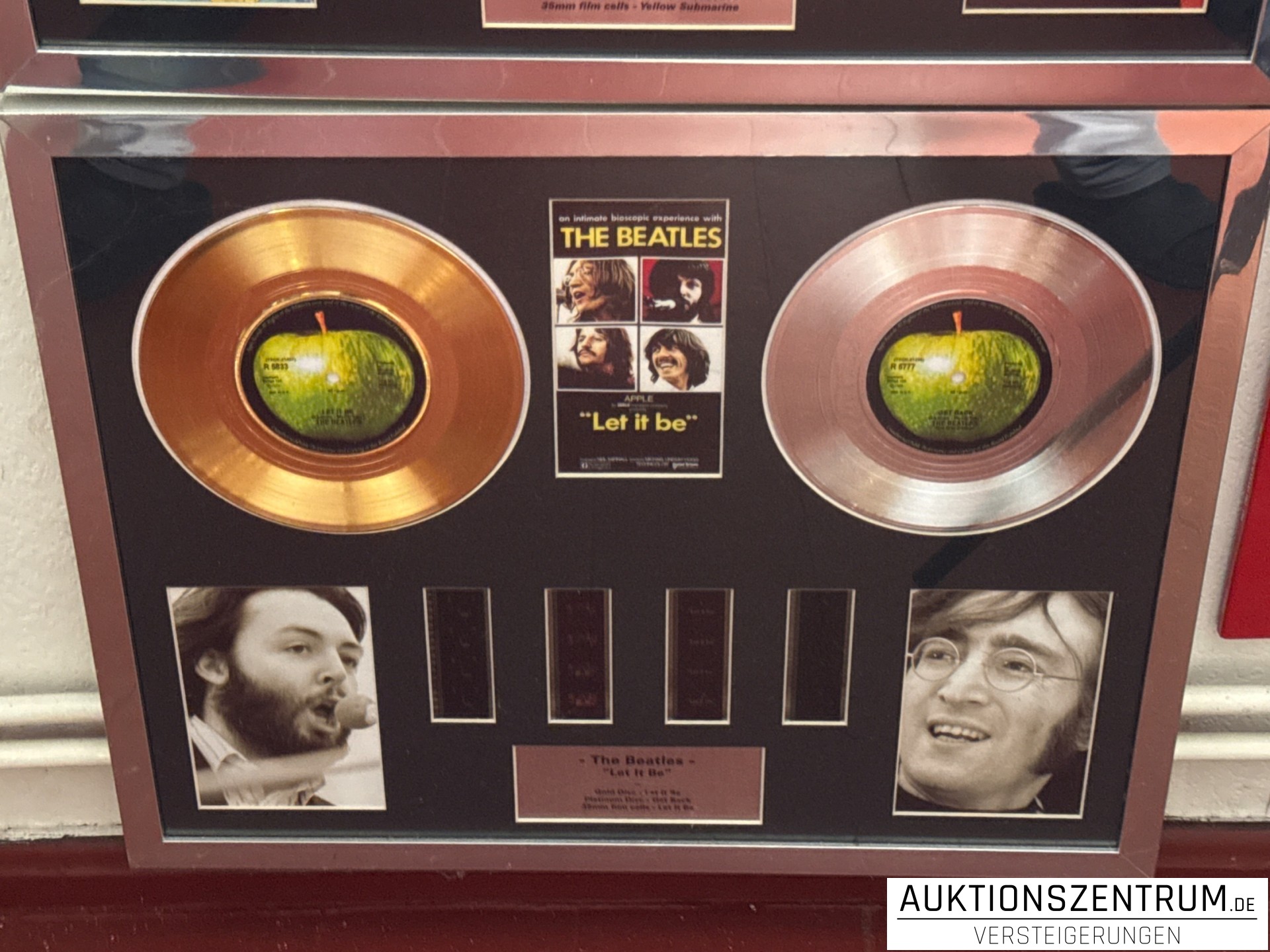 Los 115 - The Beatles Gold & Platin Disc/Vinyl Award Display, Film Cell - Let It Be / Get Back