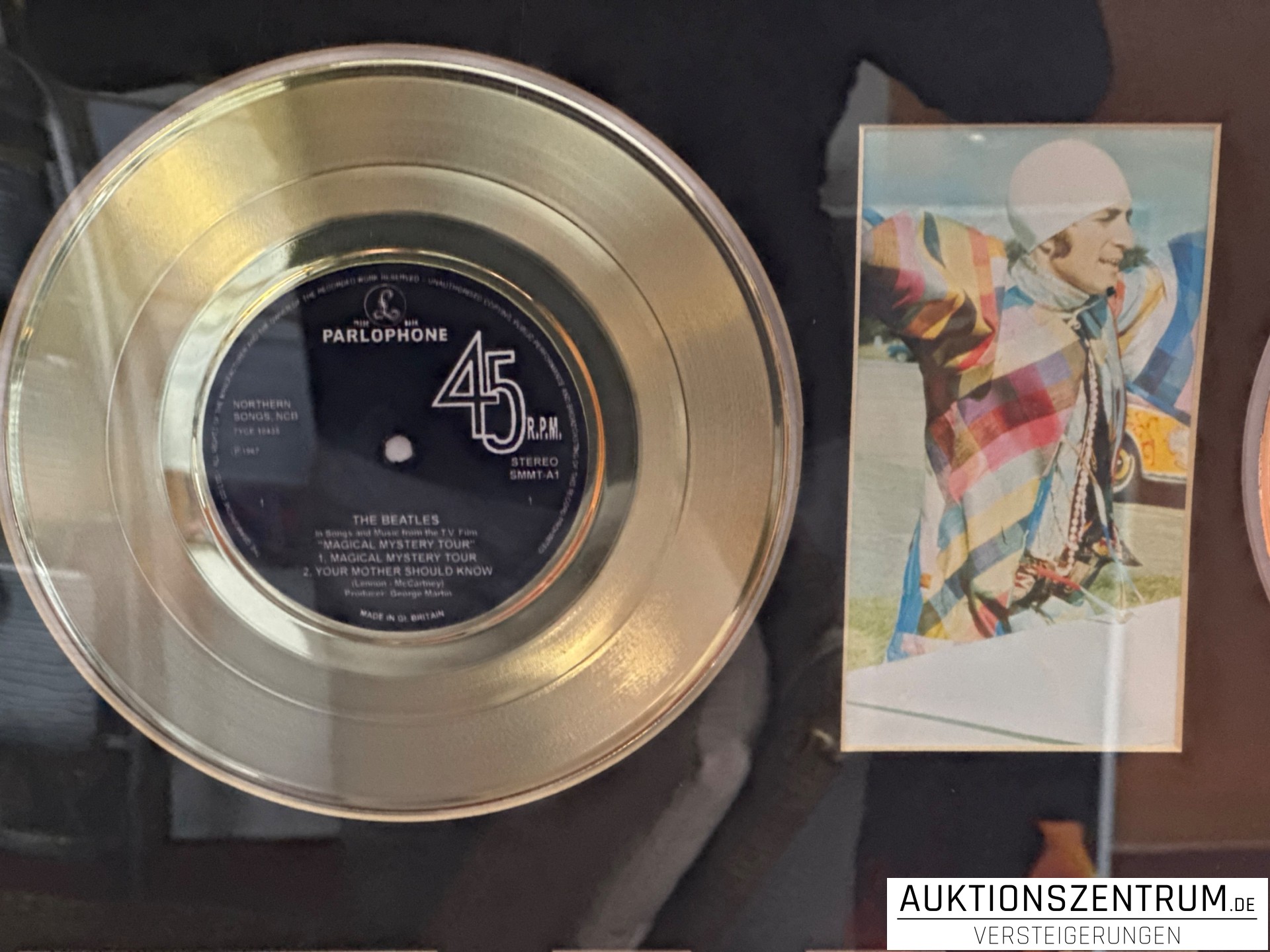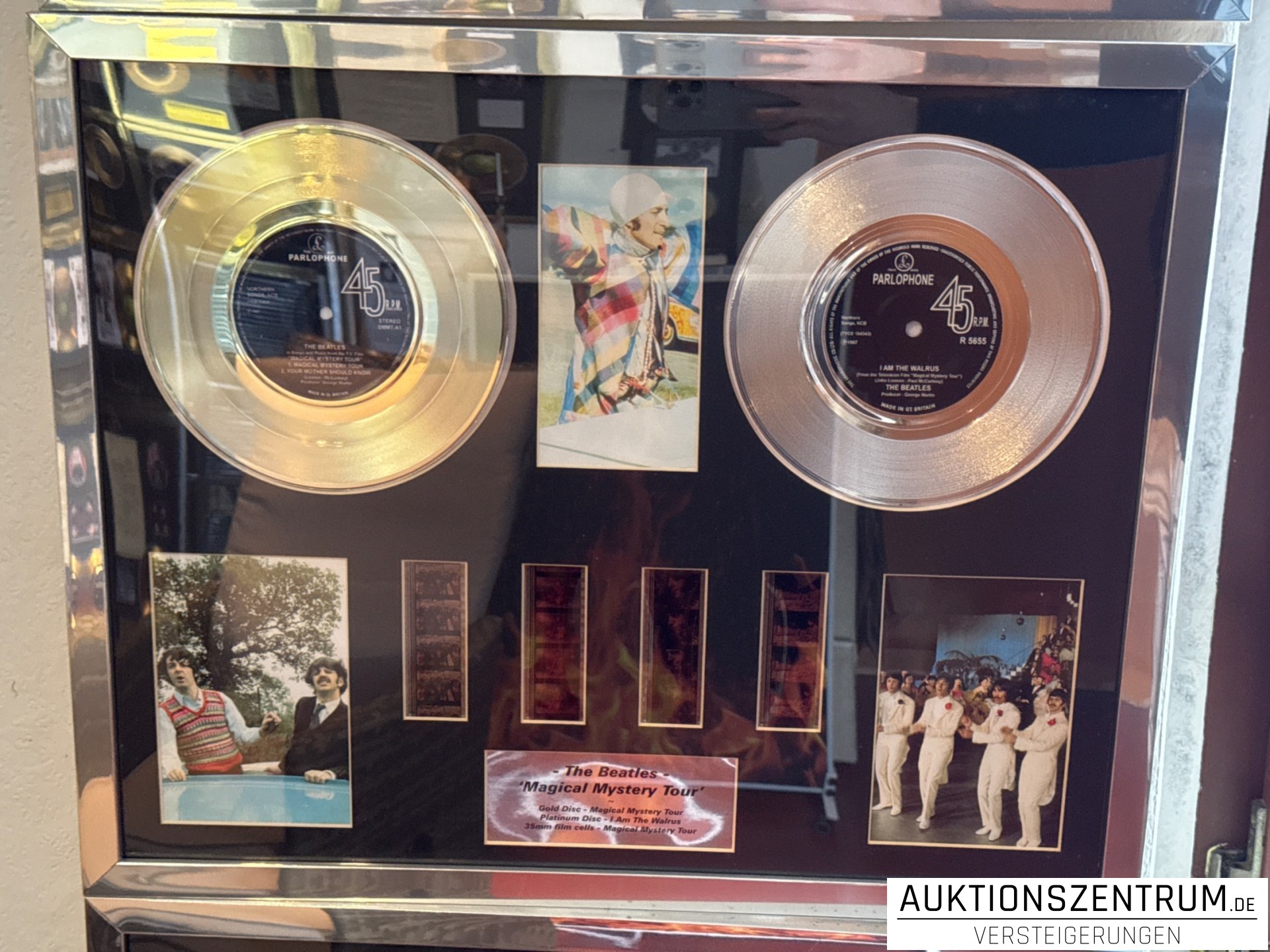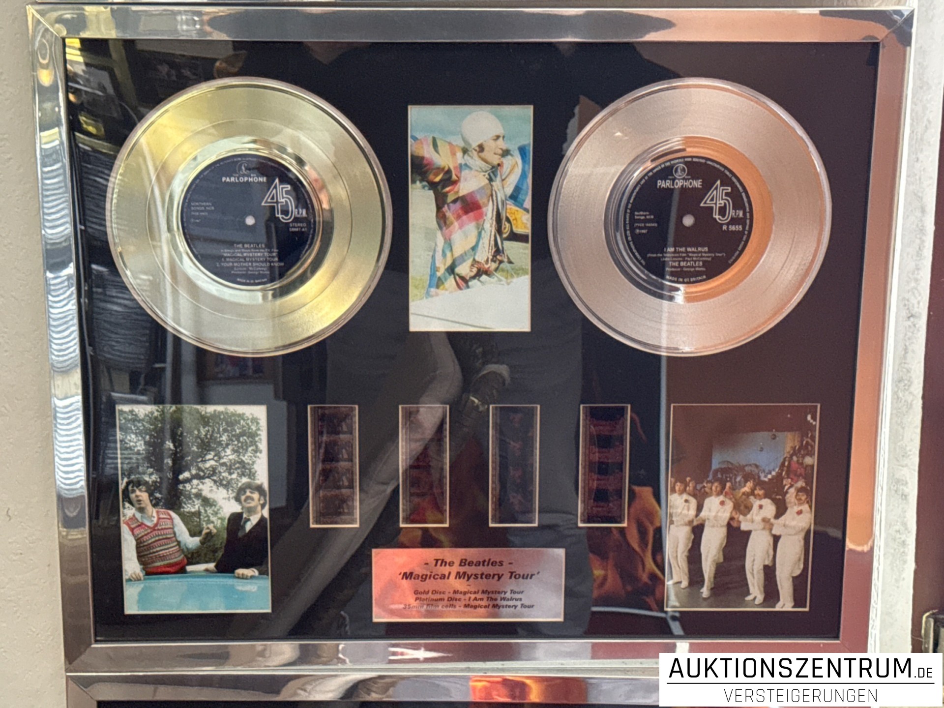Los 118 - The Beatles Gold & Platin Disc/Vinyl Award Display, Film Cell - Magical Mystery Tour / I Am The Walrus