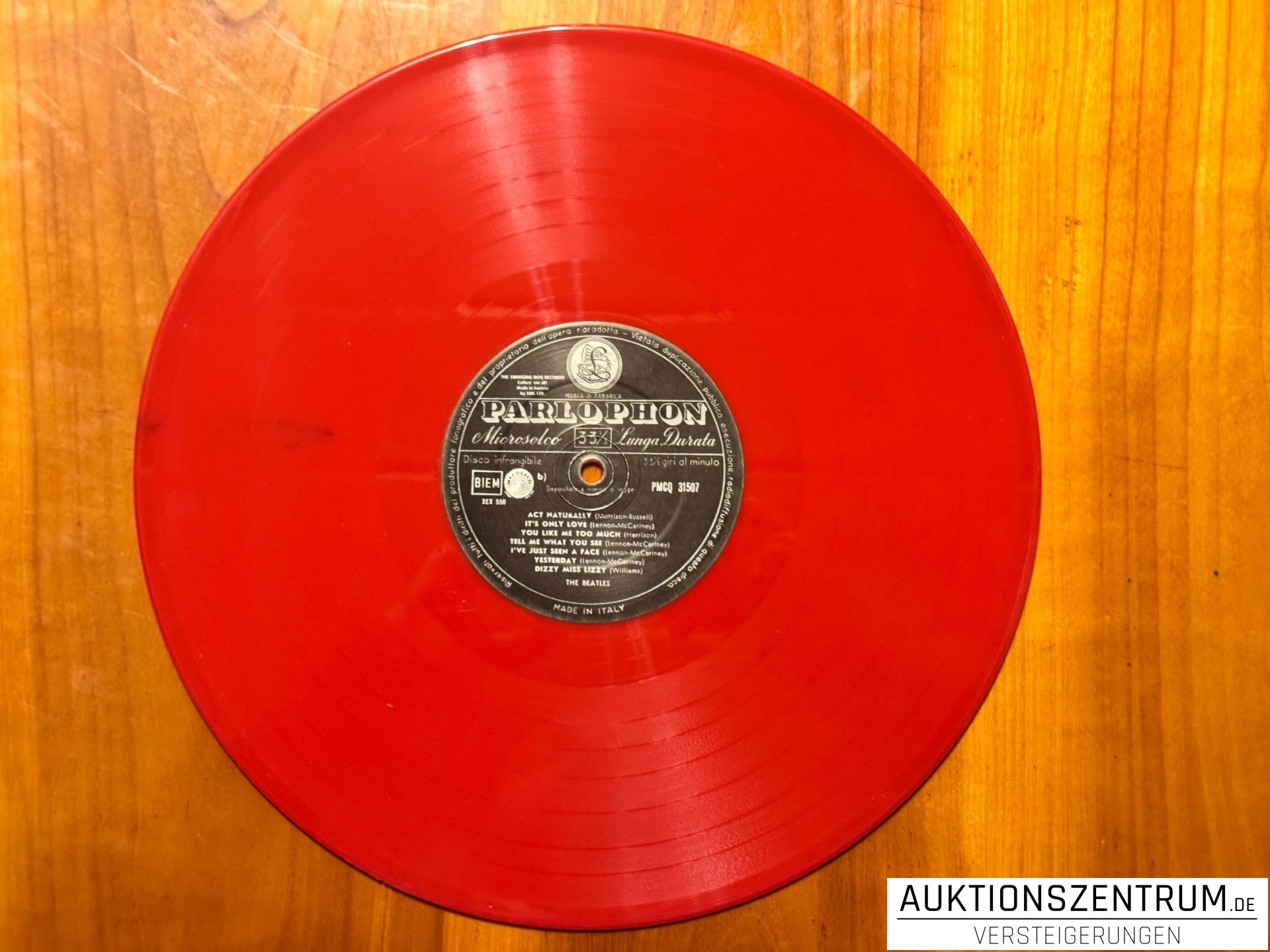 Die Langspielplatte von den Beatles als Colored Vinyl in der Farbe Rot.