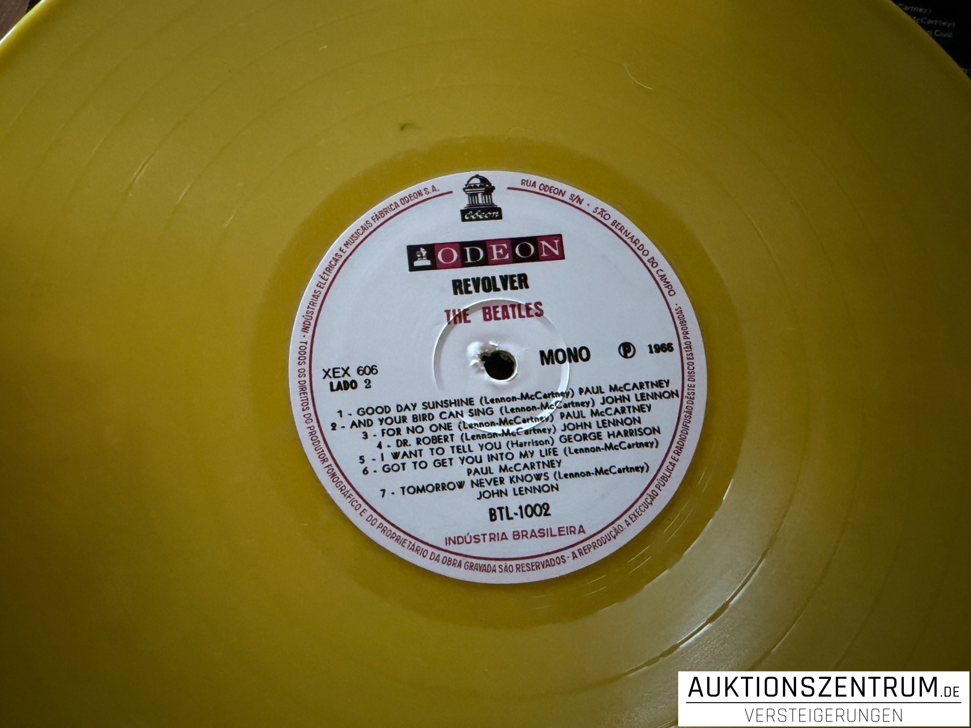 Brasilianische Pressung von 1966 des Beatles-Albums auf gelb kolorierter LP im Mono-Format.