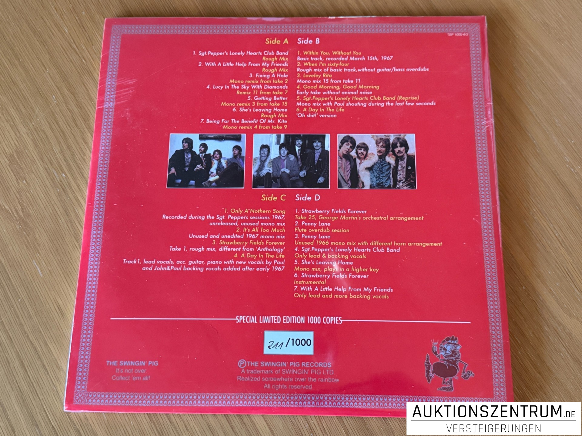 Die Langspielplatte „ Sgt. Peppers Lonely Hearts Club Band“ von den Beatles wurde nach dem Releasedatum später in dieser Ausführung in einer 1000er Limitierung gepresst. Die Platte ist aus koloriertem Vinyl und befindet sich im original eingeschweißten Zustand (Sealed).
