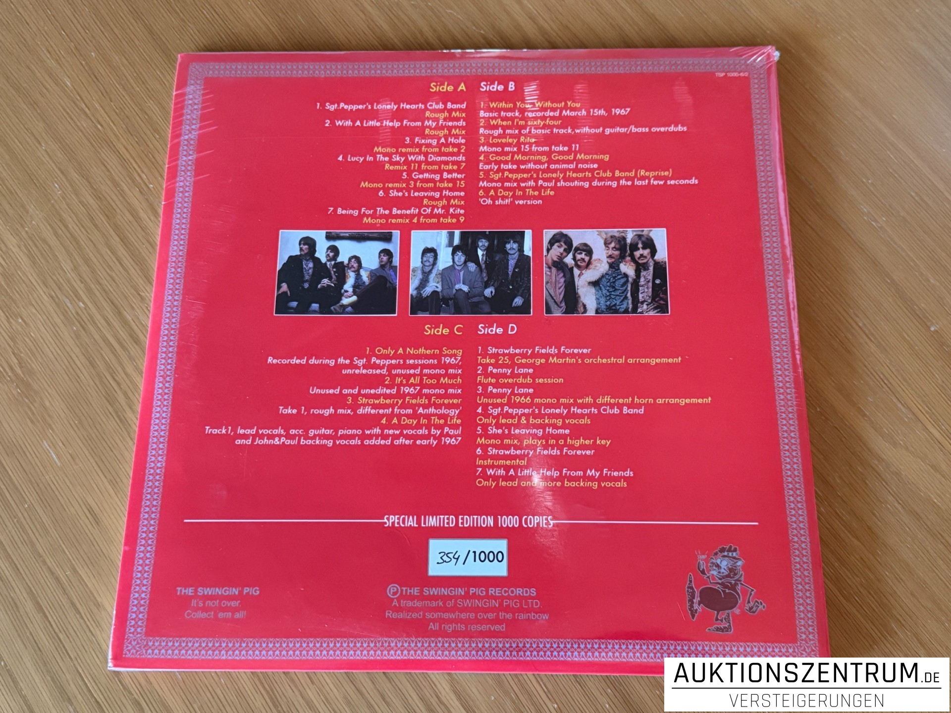 Die Langspielplatte „Sgt. Peppers Lonely Hearts Club Band“ von den Beatles wurde nach dem Releasedatum später in dieser Ausführung in einer 1000er Limitierung gepresst. Die Platte ist aus koloriertem Vinyl und befindet sich im original eingeschweißten Zustand (Sealed).
