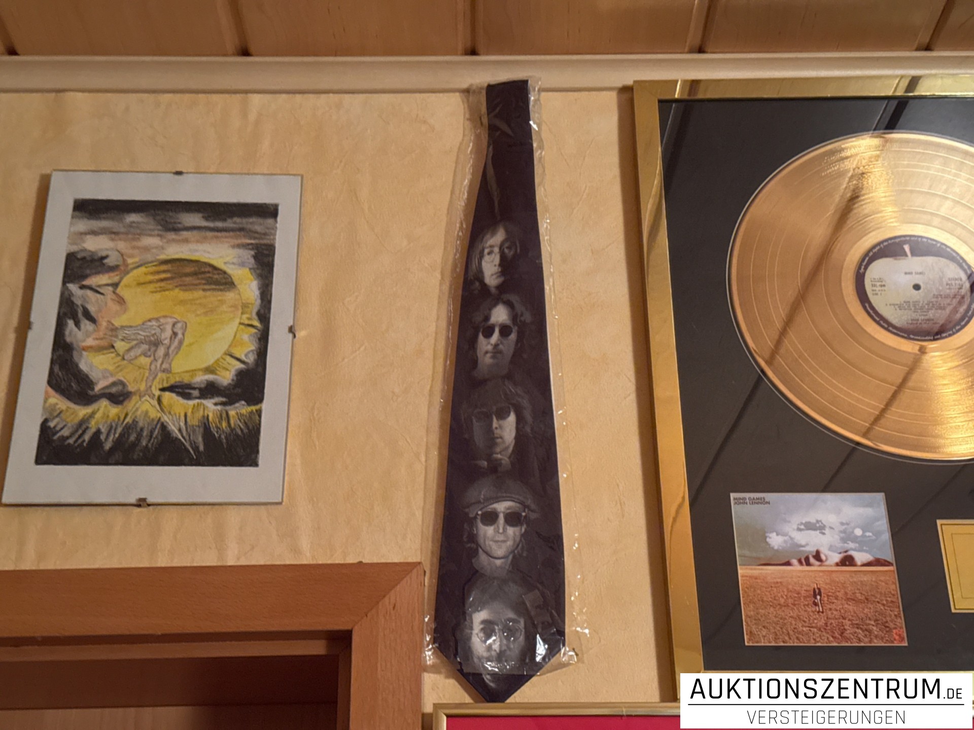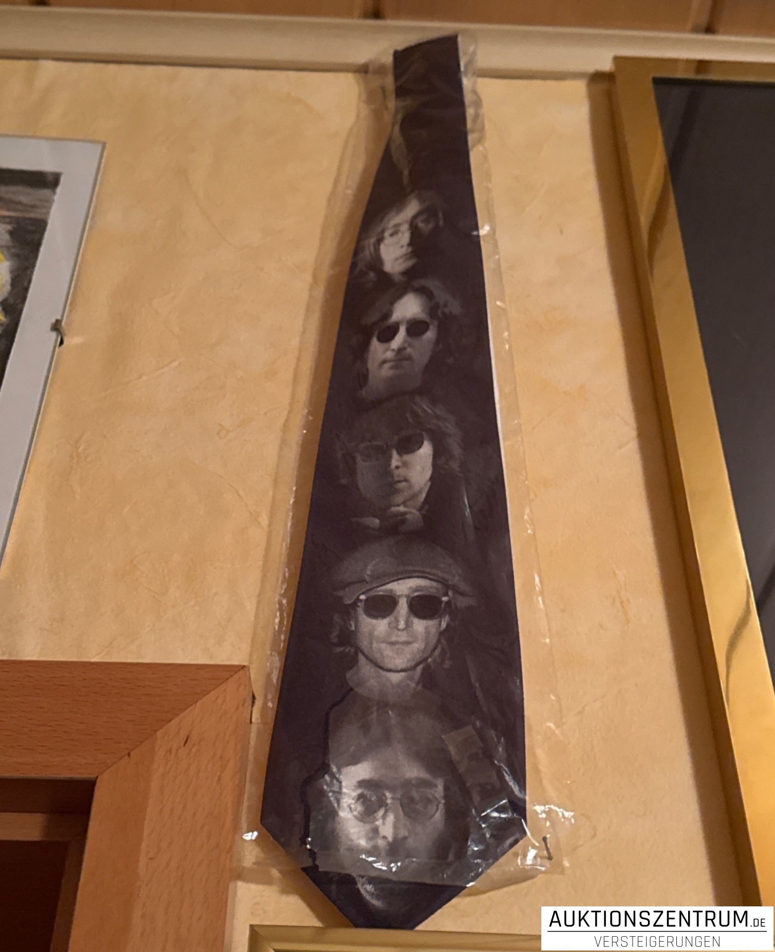 Unique Bob Gruen Autograph on John Lennon Tie (Unikat Krawatte)